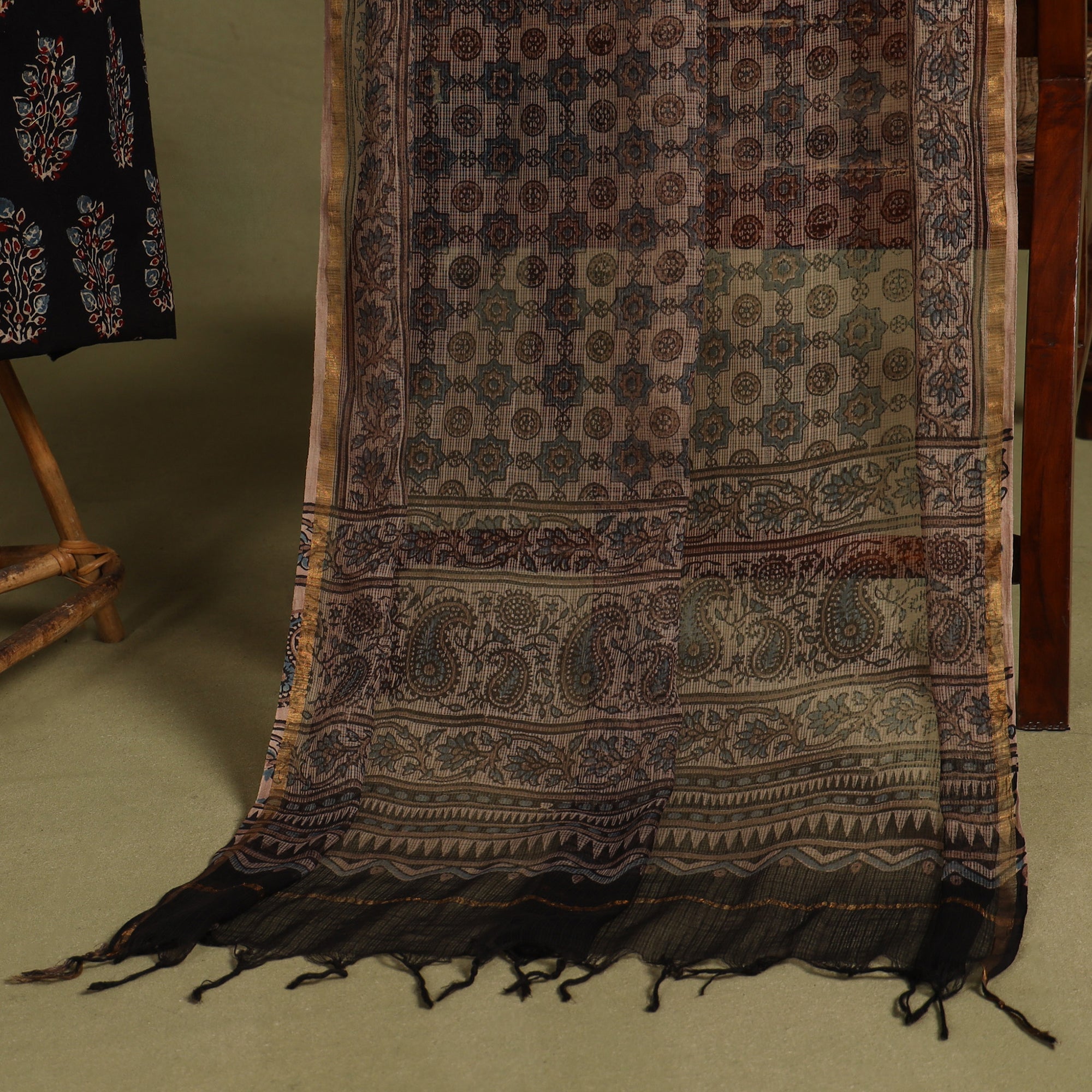 Ajrakh is a well-known traditional vegetable dyeing that resists block-printing techniques on cloth. Originated in Kutch, It is nearly around 4,500 years old practised by Khatri community of Kutch and Sikh.