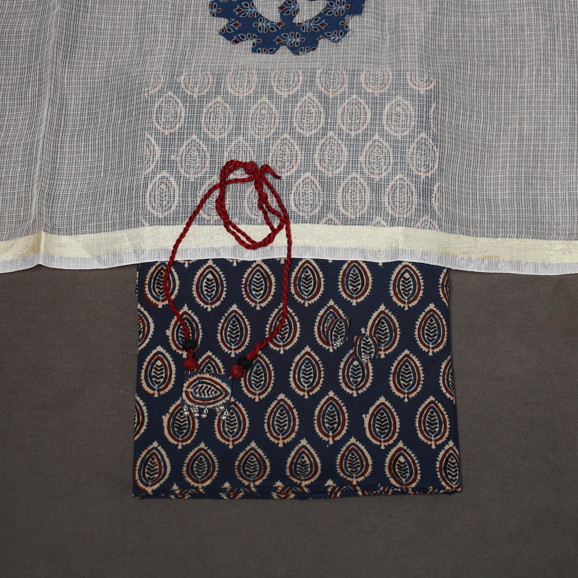 This blue 2pc ajrakh block printed cotton natural dyed kurta with an applique cut work kota doria cotton dupatta is designed for both festive elegance and everyday comfort. Styled with a coordinated necklace and earrings, it brings refined ethnic charm to any occasion. Perfect for daily wear or meaningful gifting, it balances tradition with modern grace.