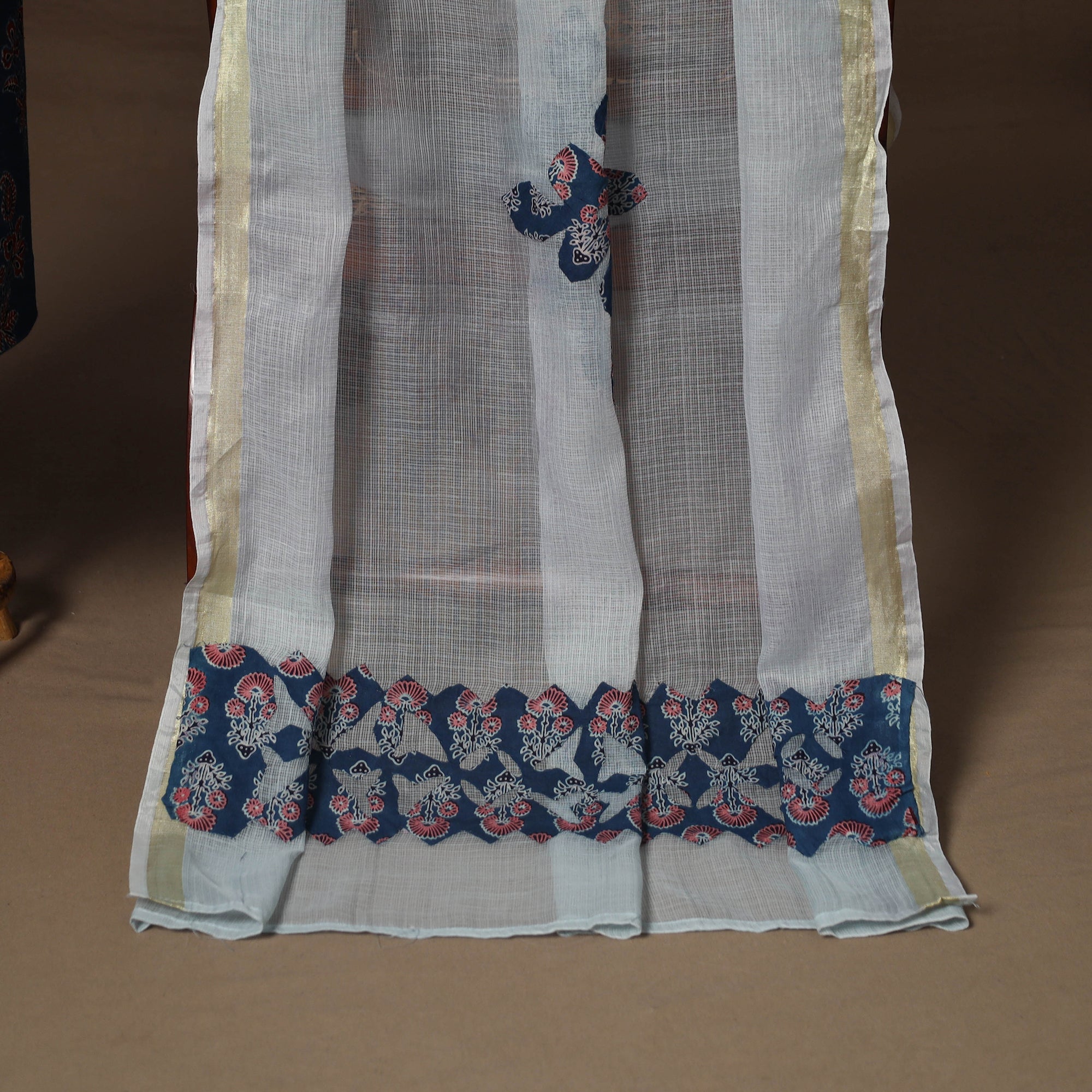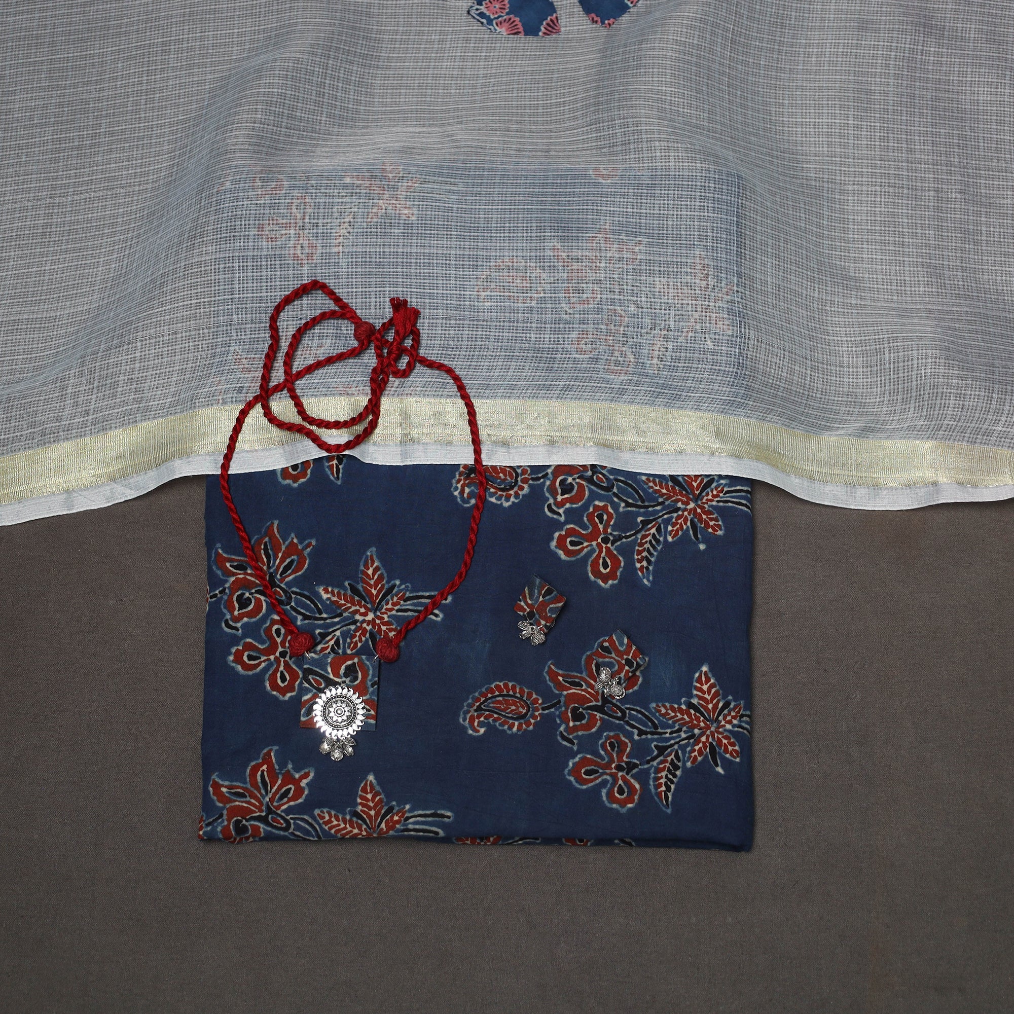 This blue 2pc ajrakh block printed cotton natural dyed kurta with an applique cut work kota doria cotton dupatta is designed for both festive elegance and everyday comfort. Styled with a coordinated necklace and earrings, it brings refined ethnic charm to any occasion. Perfect for daily wear or meaningful gifting, it balances tradition with modern grace.