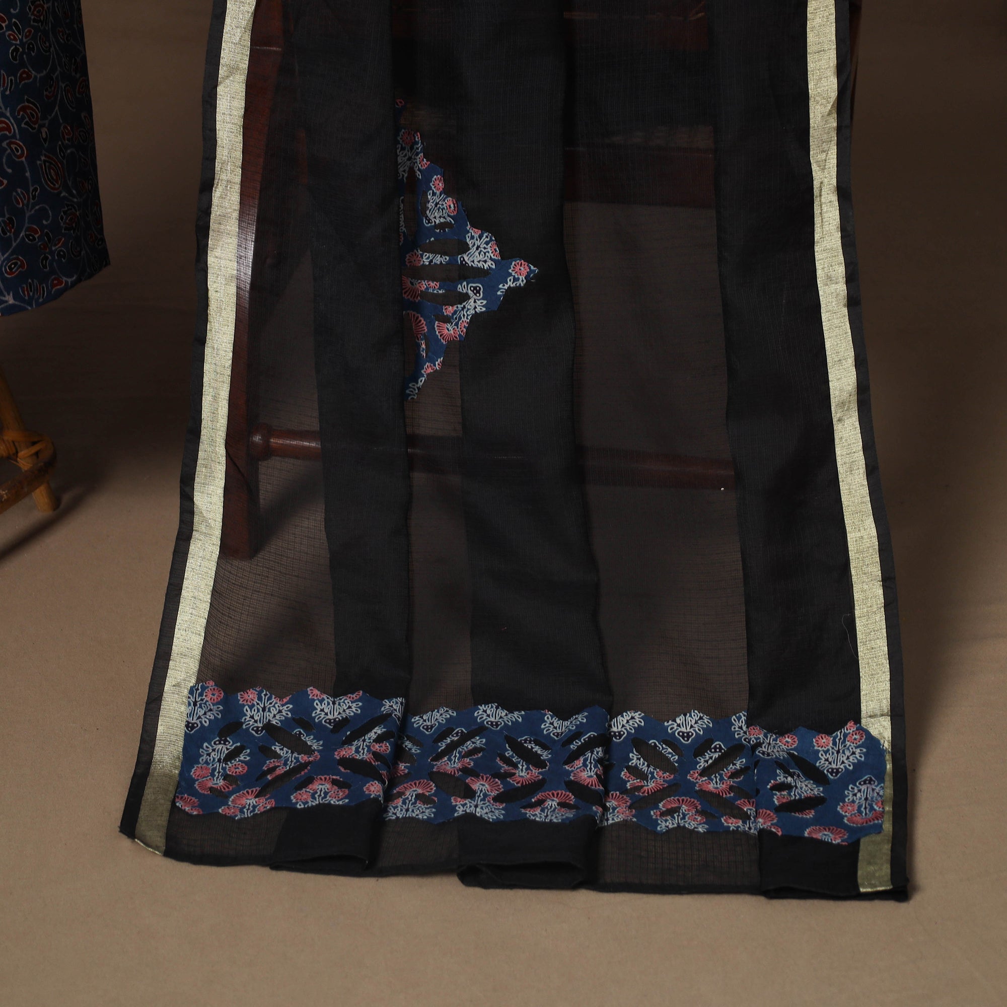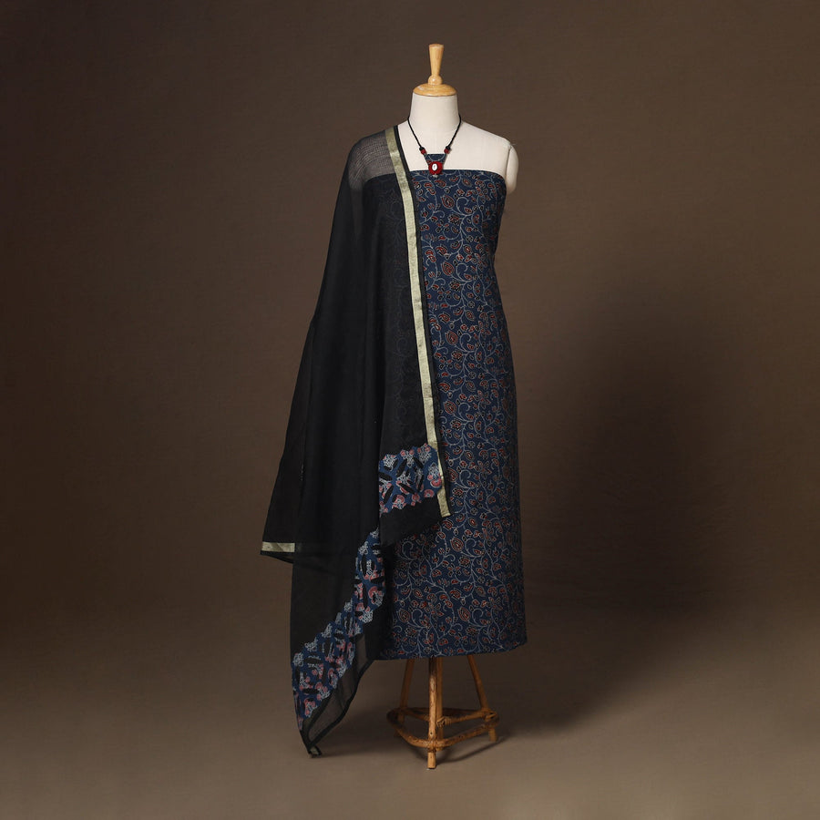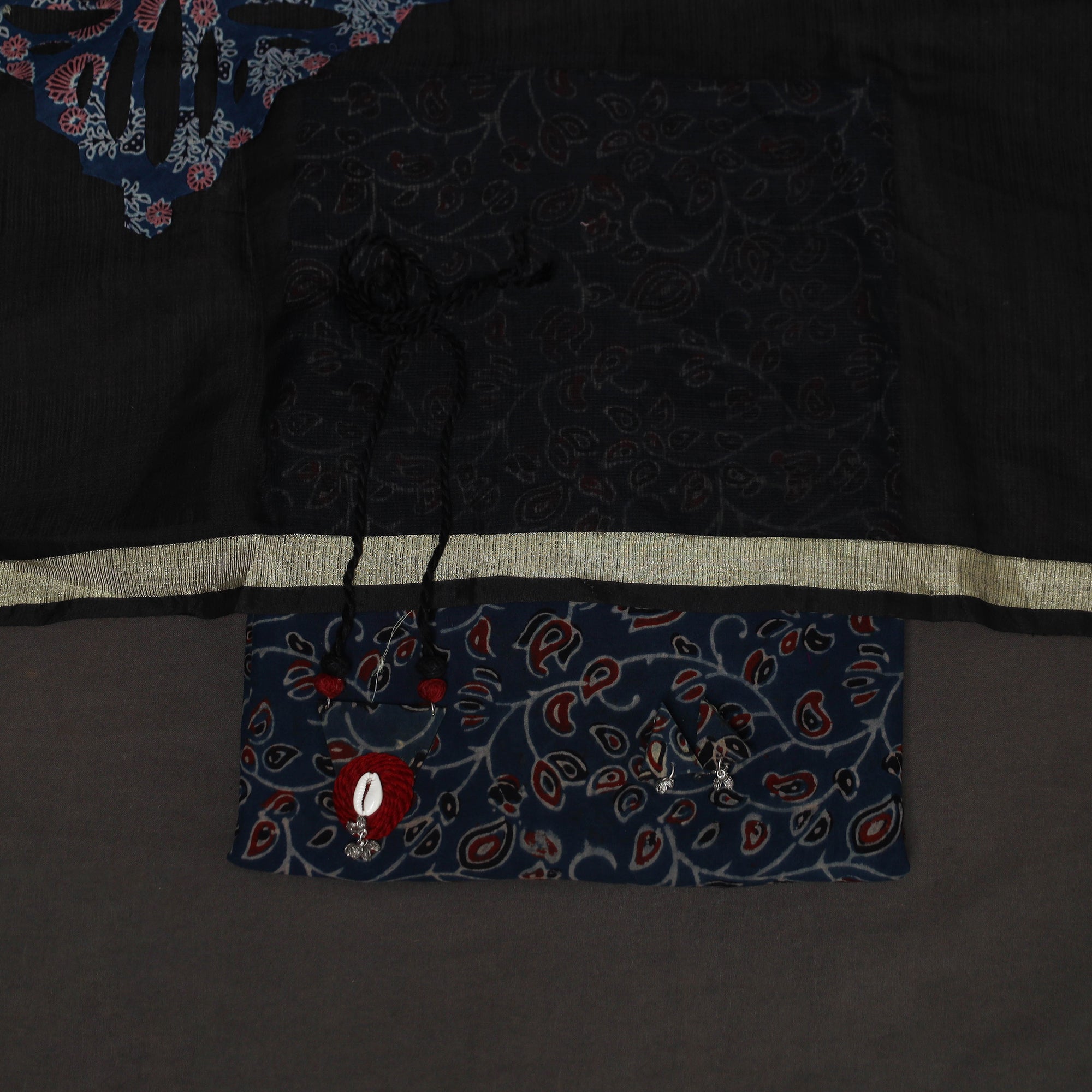 This blue 2pc ajrakh block printed cotton natural dyed kurta with an applique cut work kota doria cotton dupatta is designed for both festive elegance and everyday comfort. Styled with a coordinated necklace and earrings, it brings refined ethnic charm to any occasion. Perfect for daily wear or meaningful gifting, it balances tradition with modern grace.