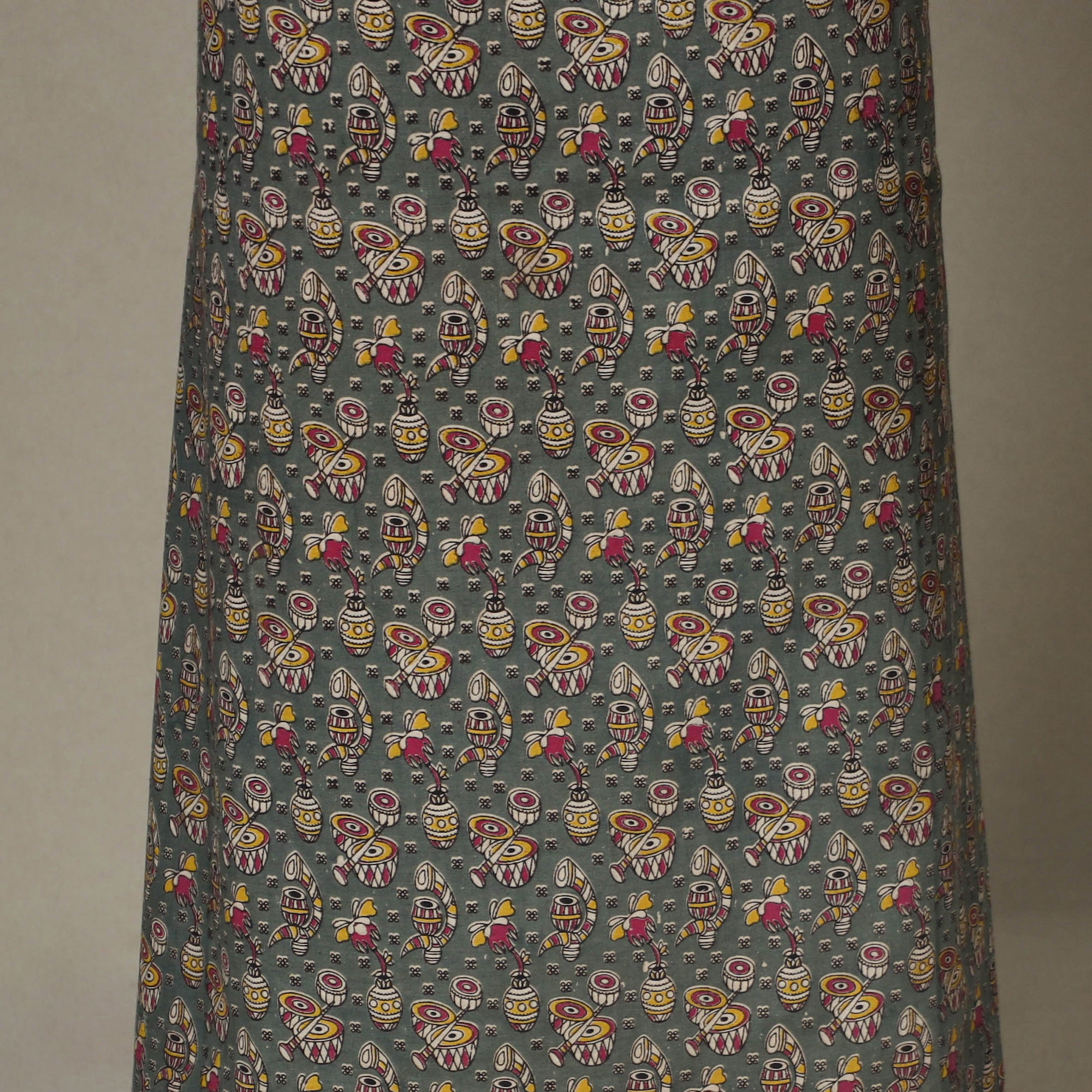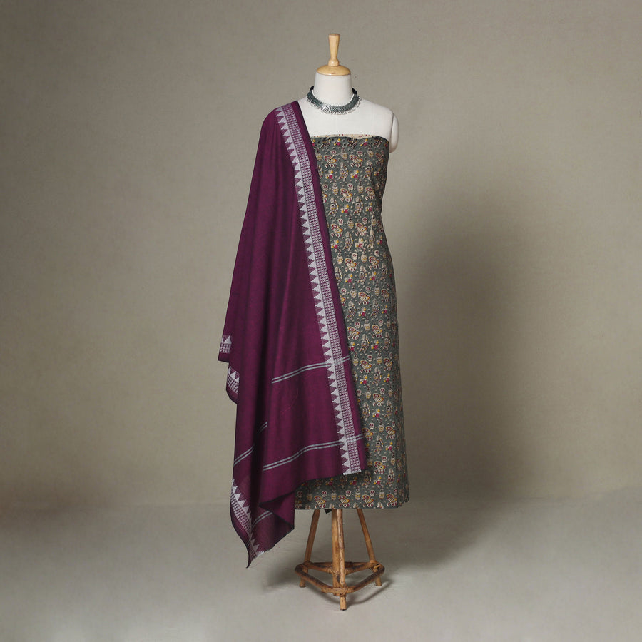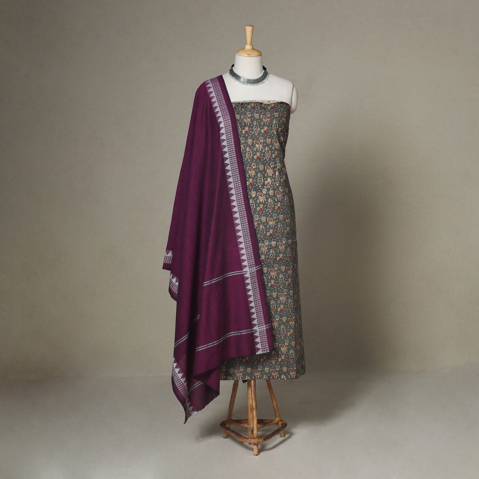 This grey 2pc kalamkari printed cotton kurta with an plain cotton handloom dupatta with thread border is designed for both festive elegance and everyday comfort, it brings refined ethnic charm to any occasion. Perfect for daily wear or meaningful gifting, it balances tradition with modern grace.