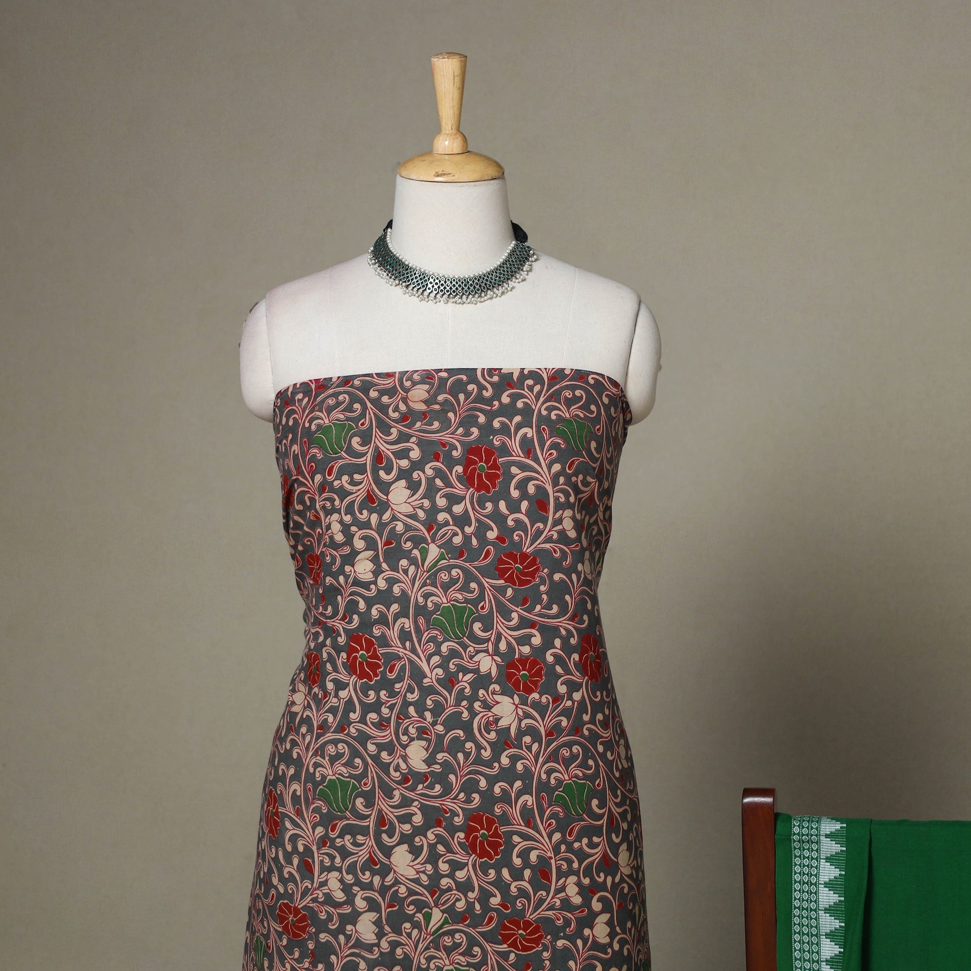 This grey 2pc kalamkari printed cotton kurta with an plain cotton handloom dupatta with thread border is designed for both festive elegance and everyday comfort, it brings refined ethnic charm to any occasion. Perfect for daily wear or meaningful gifting, it balances tradition with modern grace.