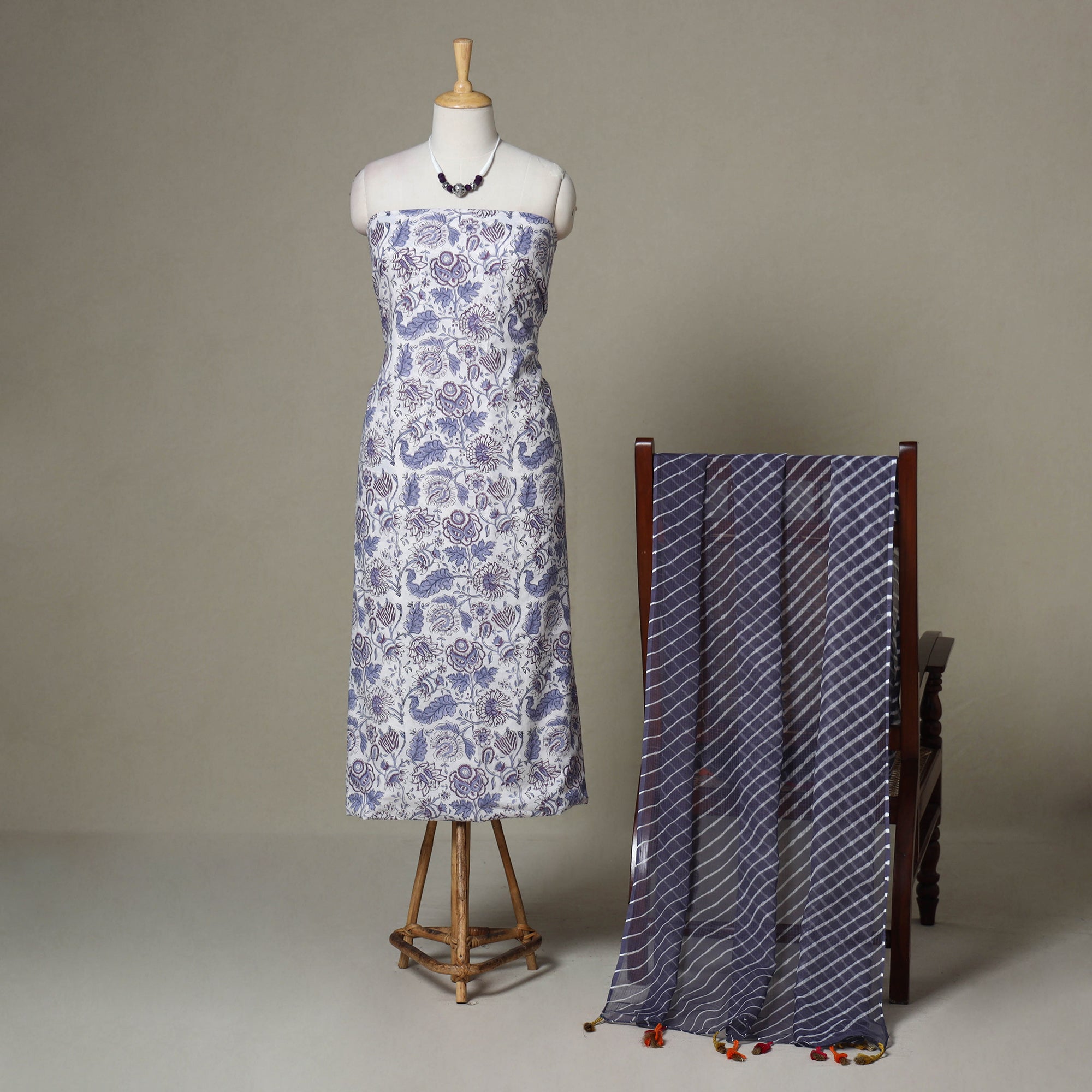 Multicolor - Chanderi Silk Block Print Sanganeri Suit Set with Dupatta for women 09