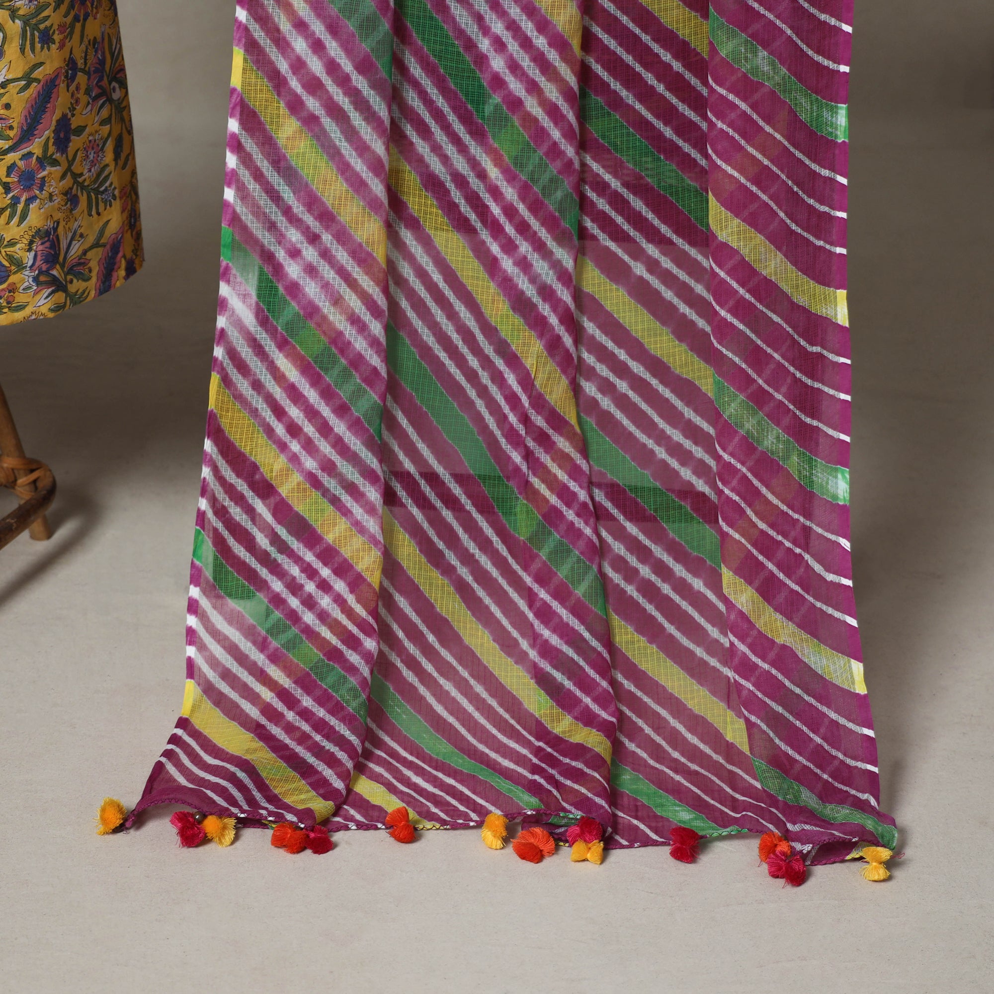 This yellow 2pc sanganeri block print cotton kurta with an leheriya tie-dye kota doria cotton dupatta with tassels is designed for both festive elegance and everyday comfort. Styled with a coordinated necklace and earrings, it brings refined ethnic charm to any occasion. Perfect for daily wear or meaningful gifting, it balances tradition with modern grace.