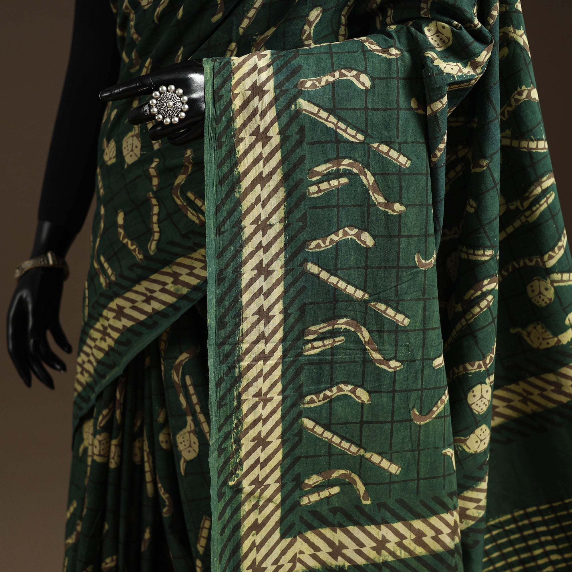 Elevate your style with our fine quality green pure cotton natural dyed special art block printed saree. Skillfully crafted by fourth generation textile printers in Rajasthan, this hand block printed saree combines contemporary designs with traditional processes. Embrace the beauty of slow fashion and the rich heritage of traditional skills with this exquisite cotton saree.