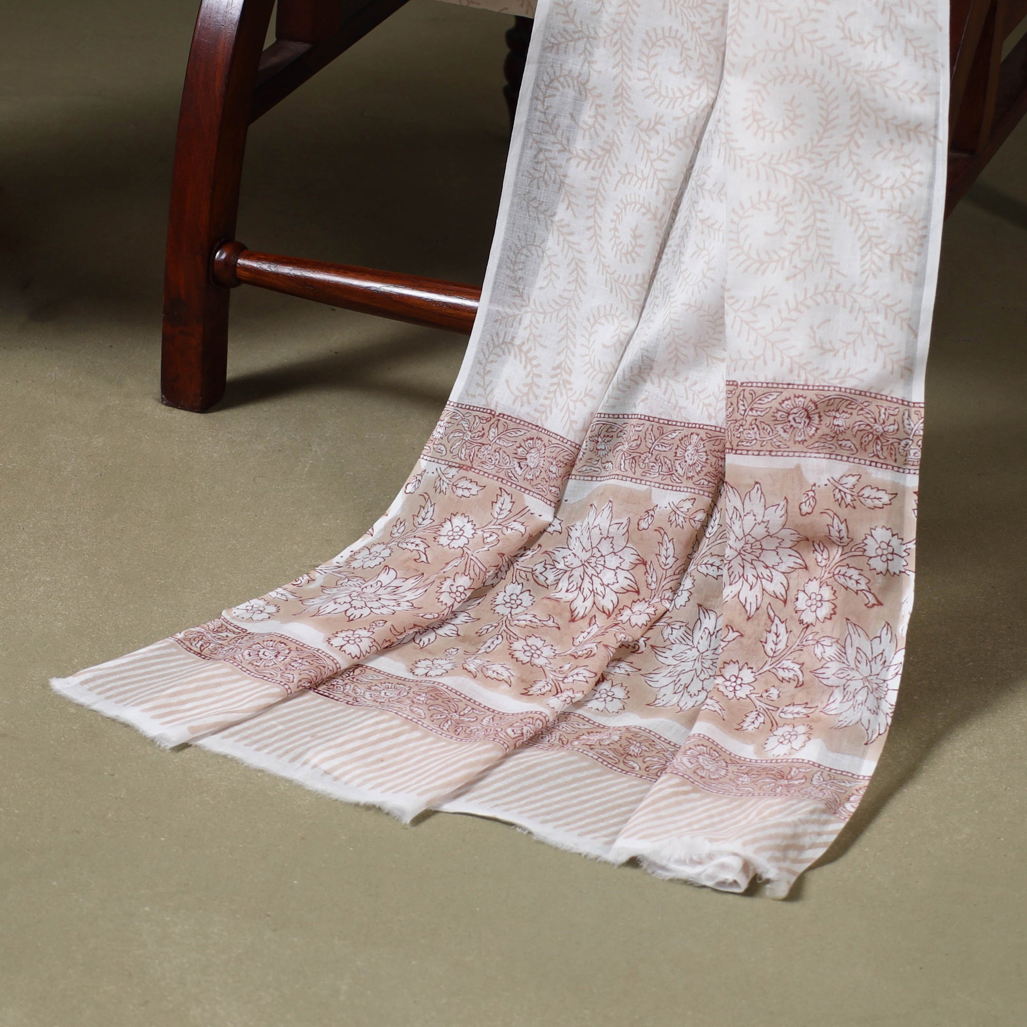 Beige - Hand Block Print Cotton Sanganeri Fabric 07