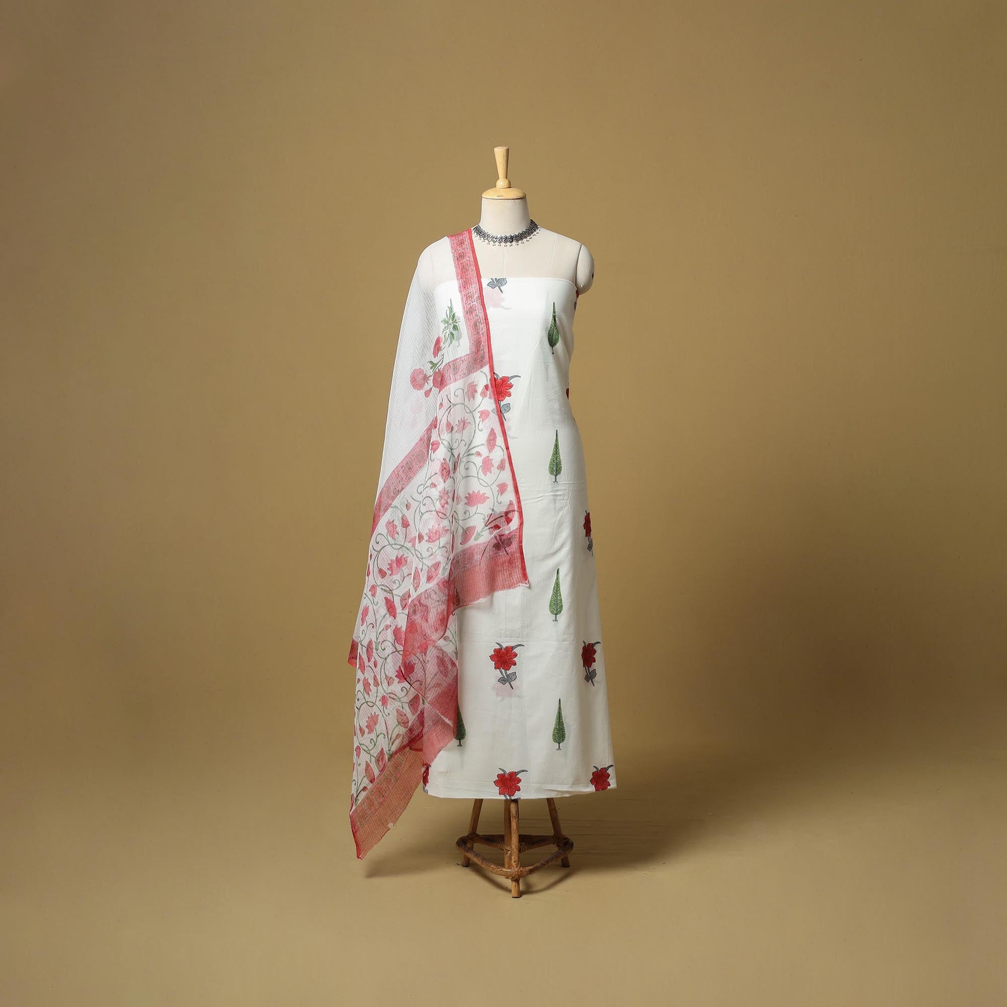 Add a timeless charm to your wardrobe with this gorgeous 3pc sanganeri cotton dress material. Crafted with love using centuries-old block printing from Jaipur, Rajasthan each piece reflects India’s artistic legacy. The colours stay vibrant thanks to bleed-free VAT dyes, and the breathable kota doria dupatta adds a delicate, breezy touch. Ideal for festive moments or graceful daily wear.