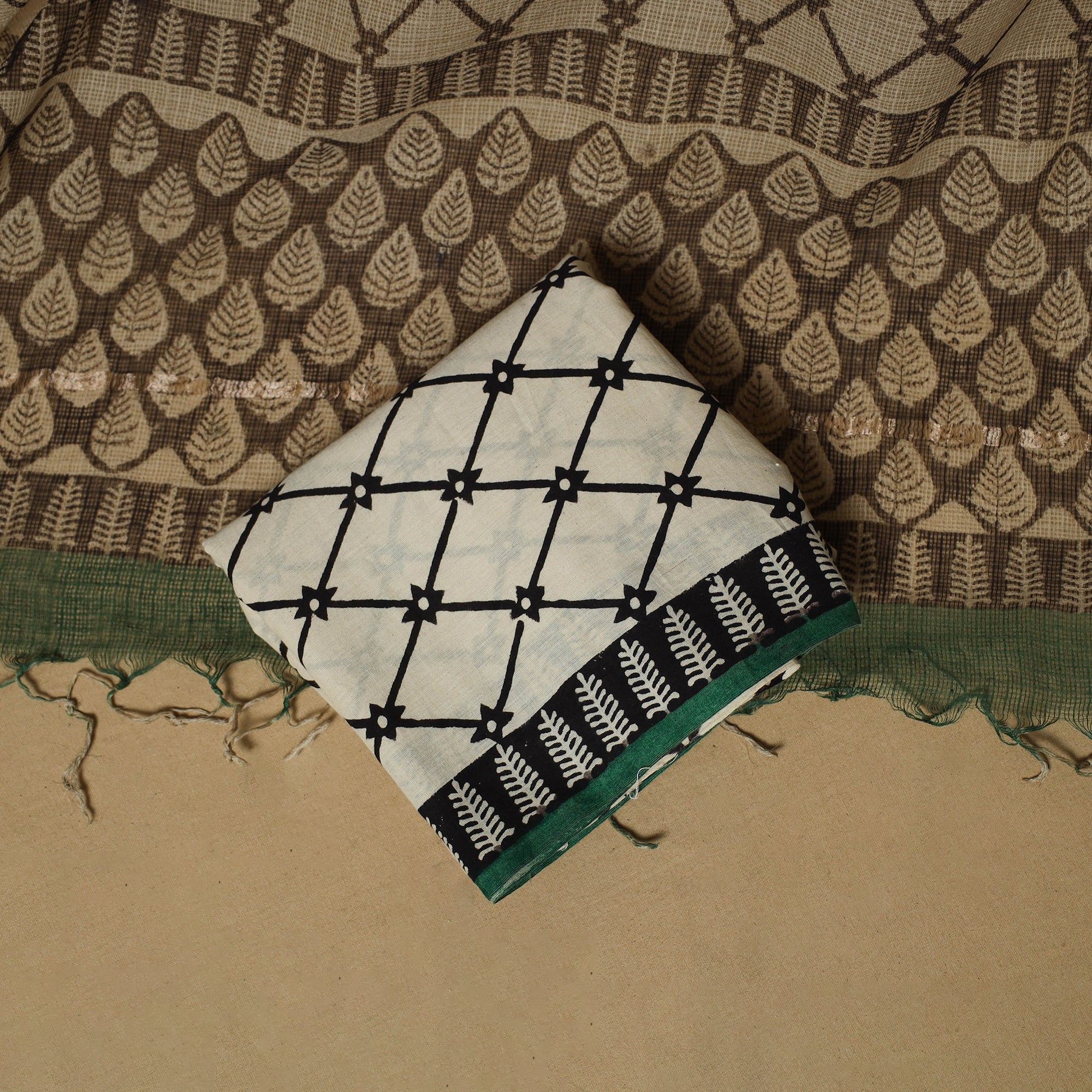 3pc bagru dress material set blends comfort with traditional Rajasthani artistry. The kurta fabric and dupatta are made from airy Kota Doria, while the bottom is cotton for easy wear. Featuring classic bagru block prints, the fabric is printed by skilled artisans from Rajasthan using hand-carved wooden blocks, creating a graceful look suitable for everyday wear and light festive occasions.