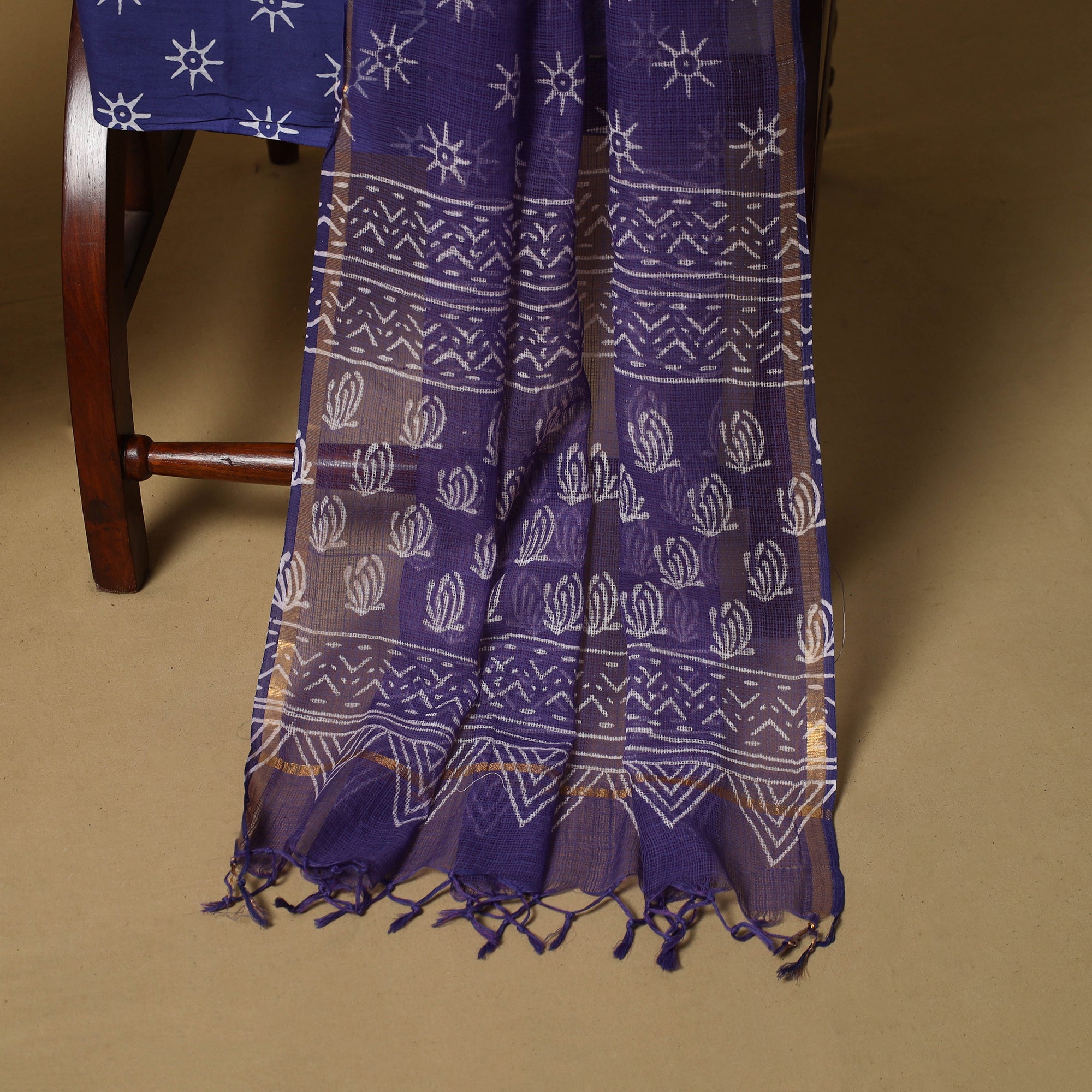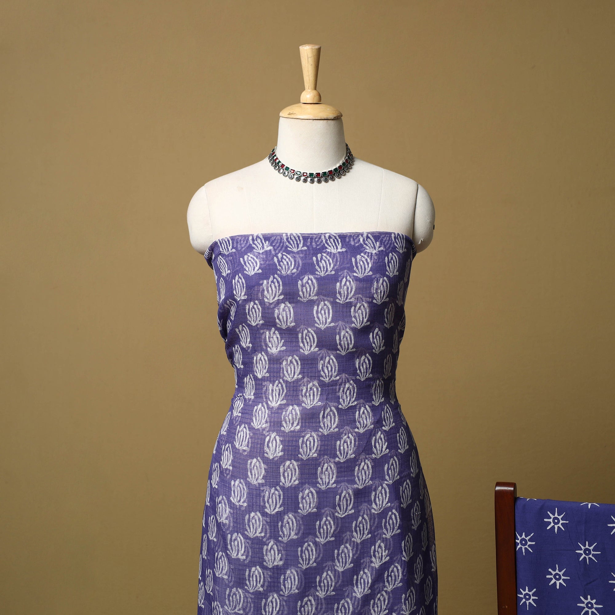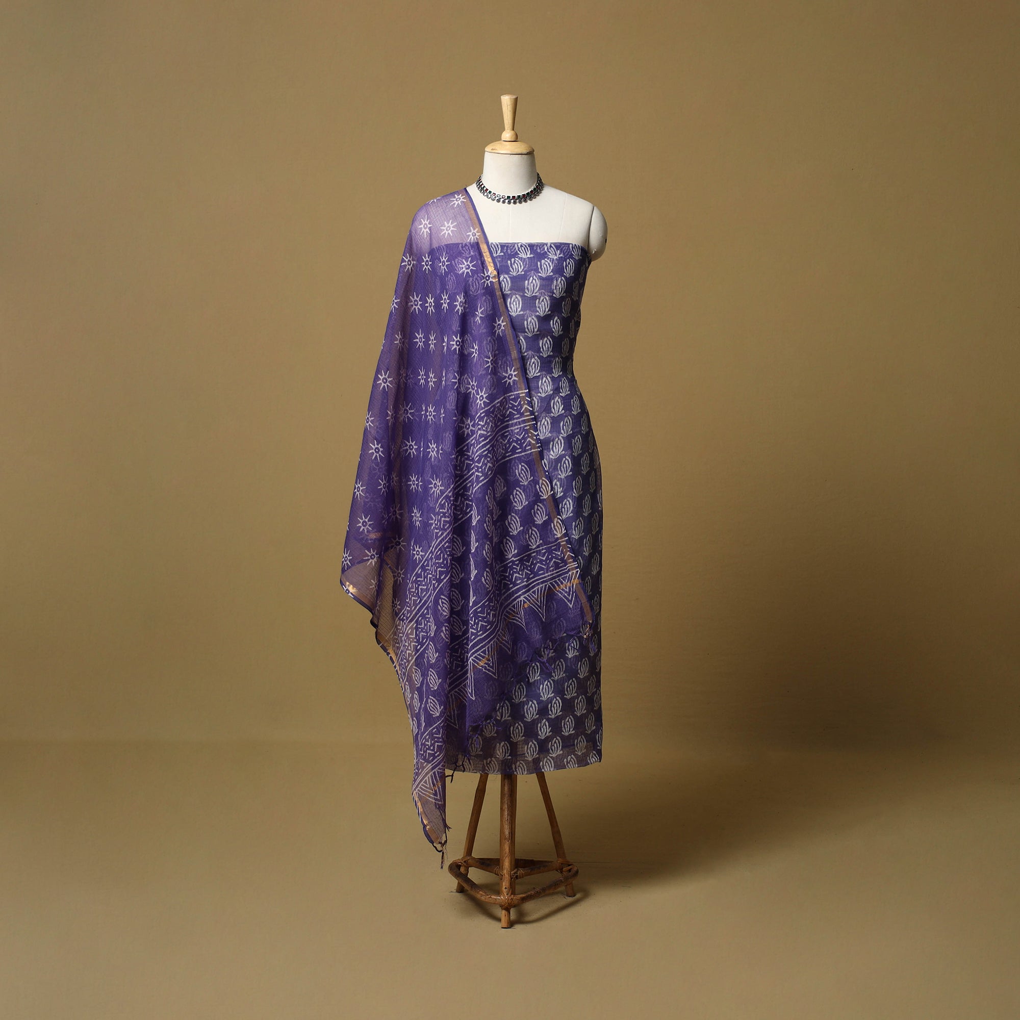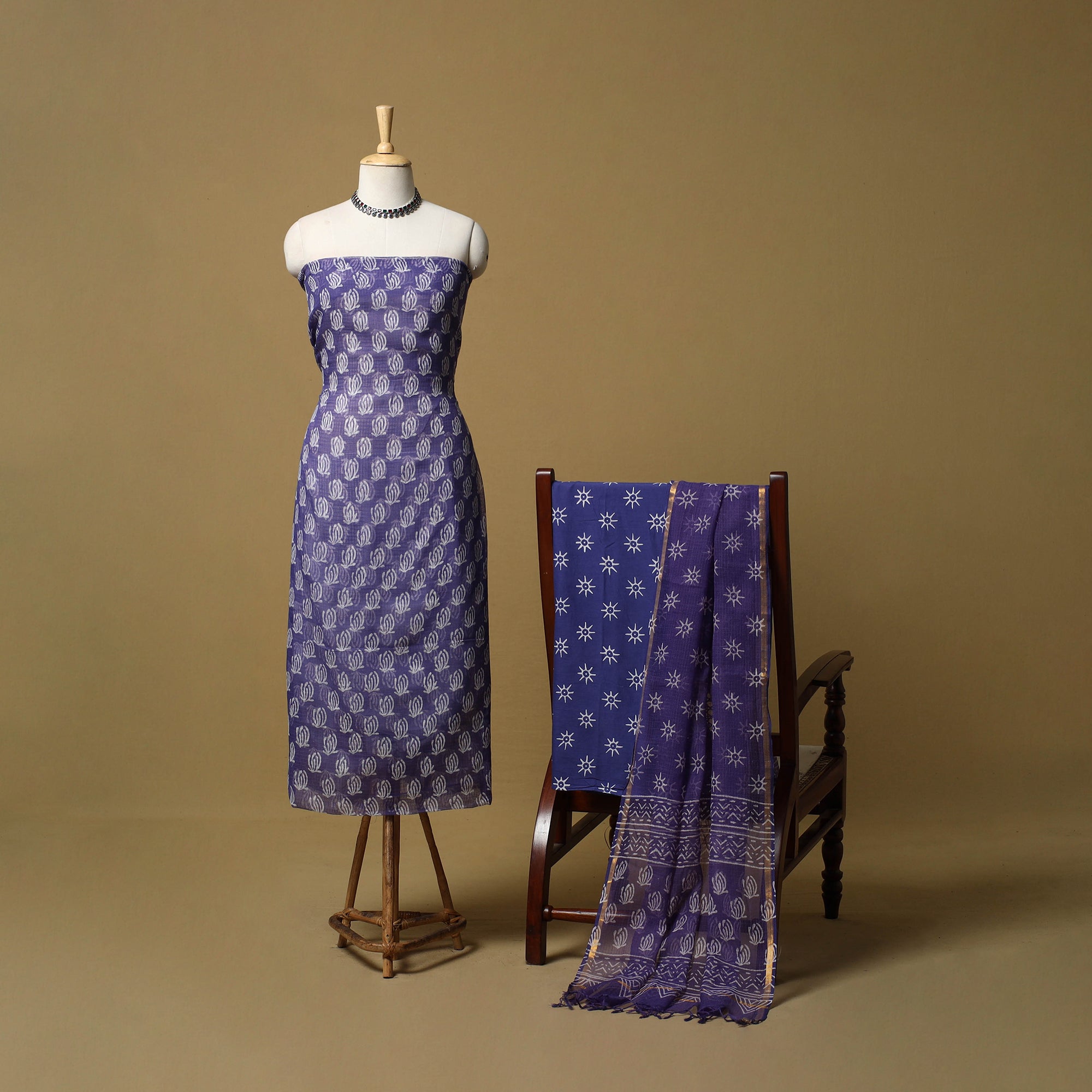 3pc bagru dress material set blends comfort with traditional Rajasthani artistry. The kurta fabric and dupatta are made from airy Kota Doria, while the bottom is cotton for easy wear. Featuring classic bagru block prints, the fabric is printed by skilled artisans from Rajasthan using hand-carved wooden blocks, creating a graceful look suitable for everyday wear and light festive occasions.