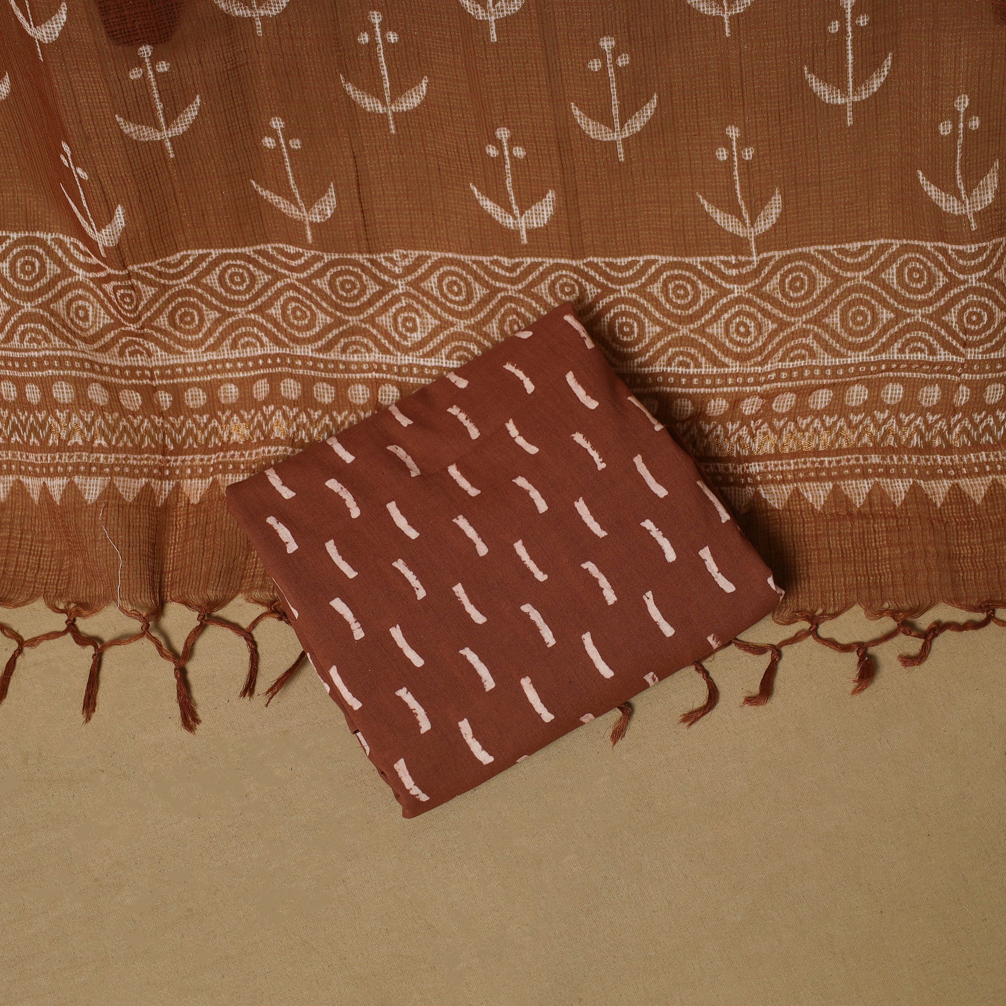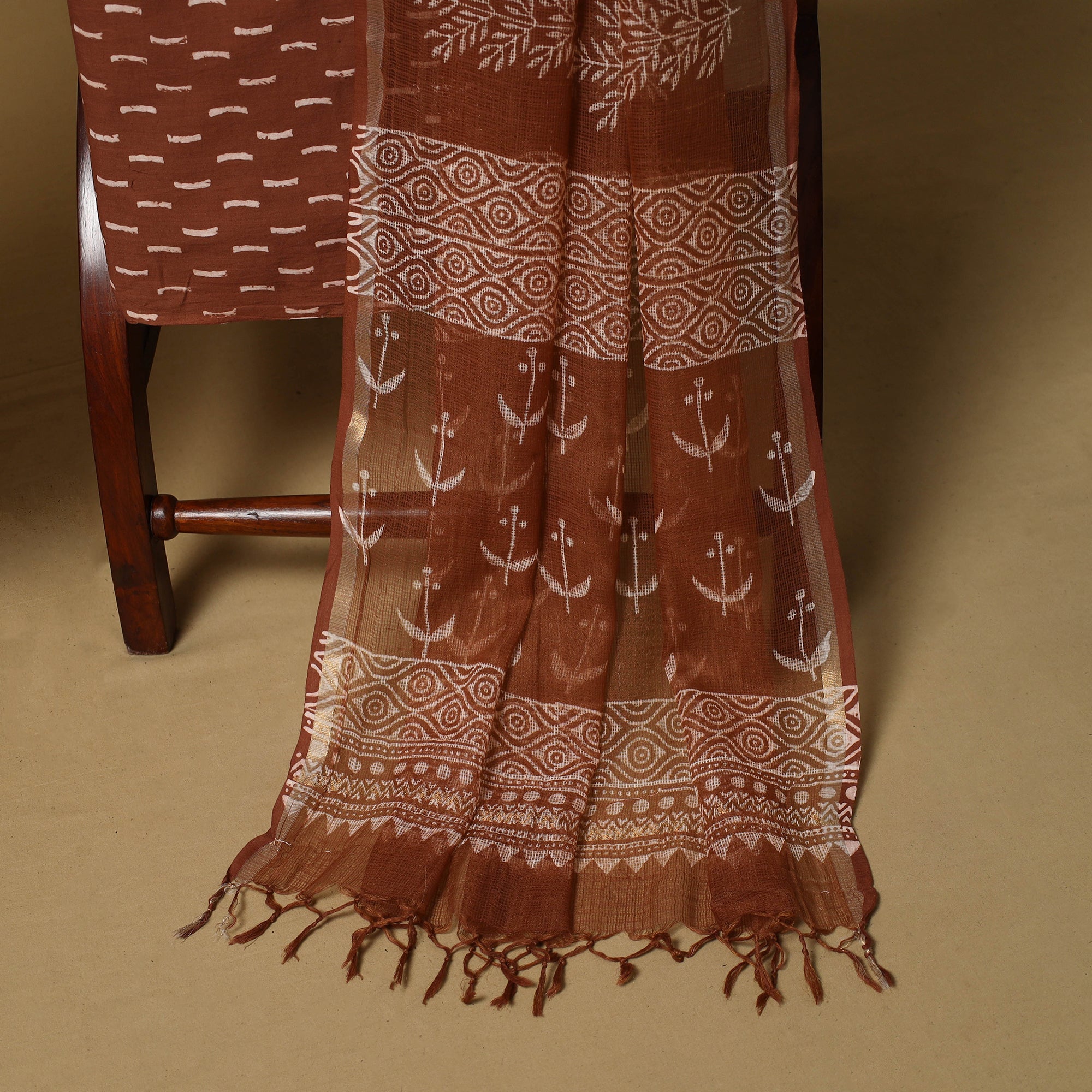 Brown - Block Print Natural Dyed Cotton Vanaspati Bagru Co-Ord Set 06