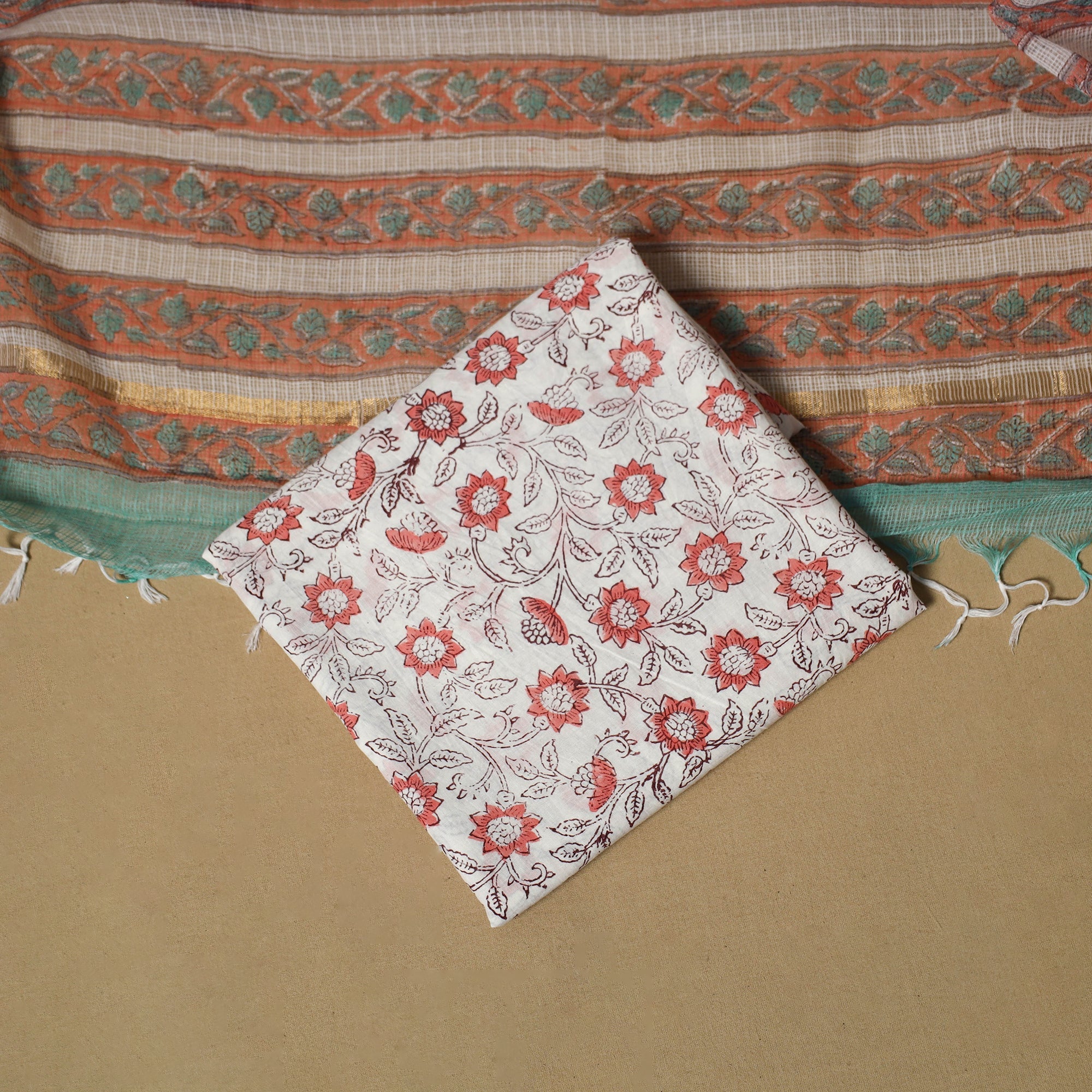 3pc Block Print Kota Doria Cotton Sanganeri Unstitched Dress Material 21