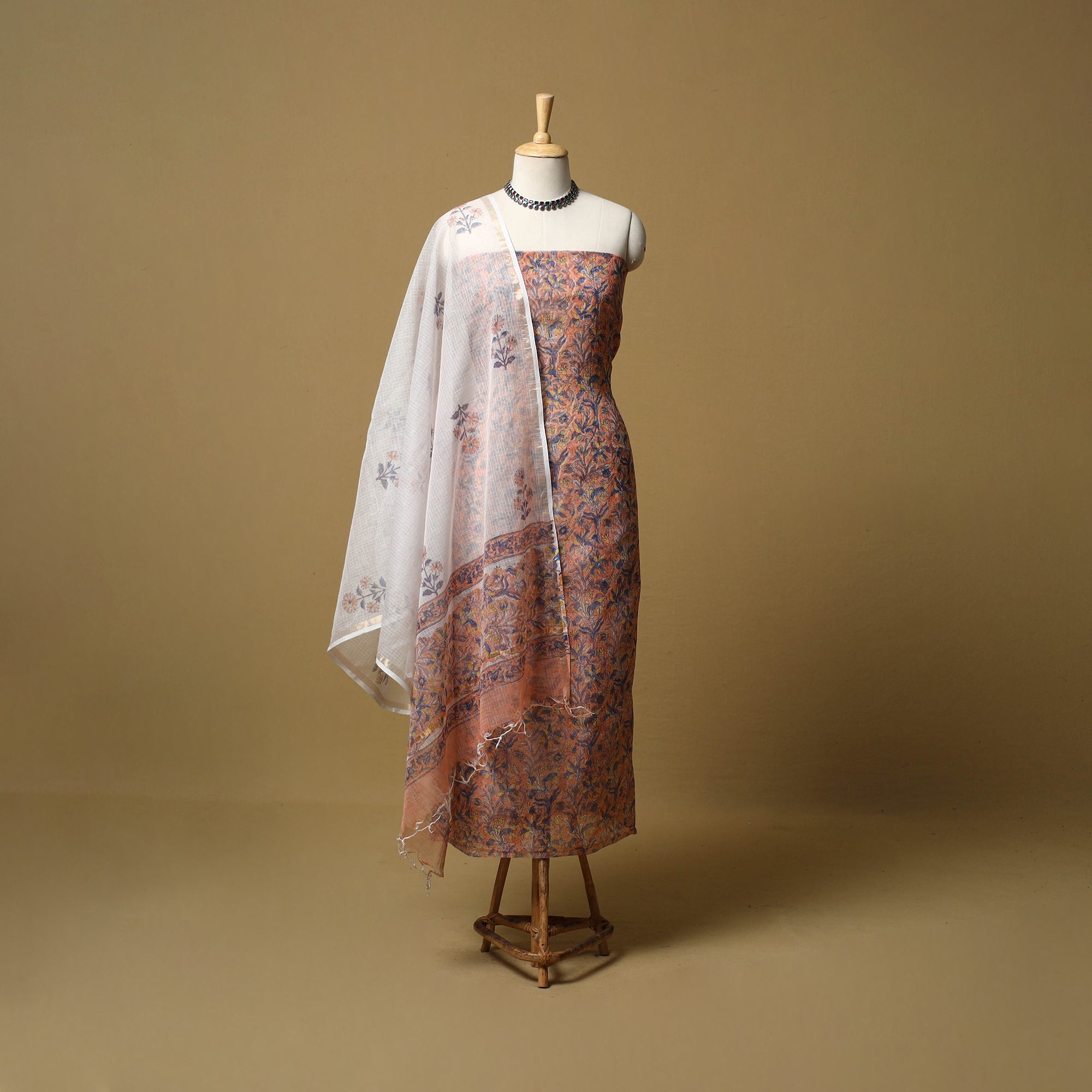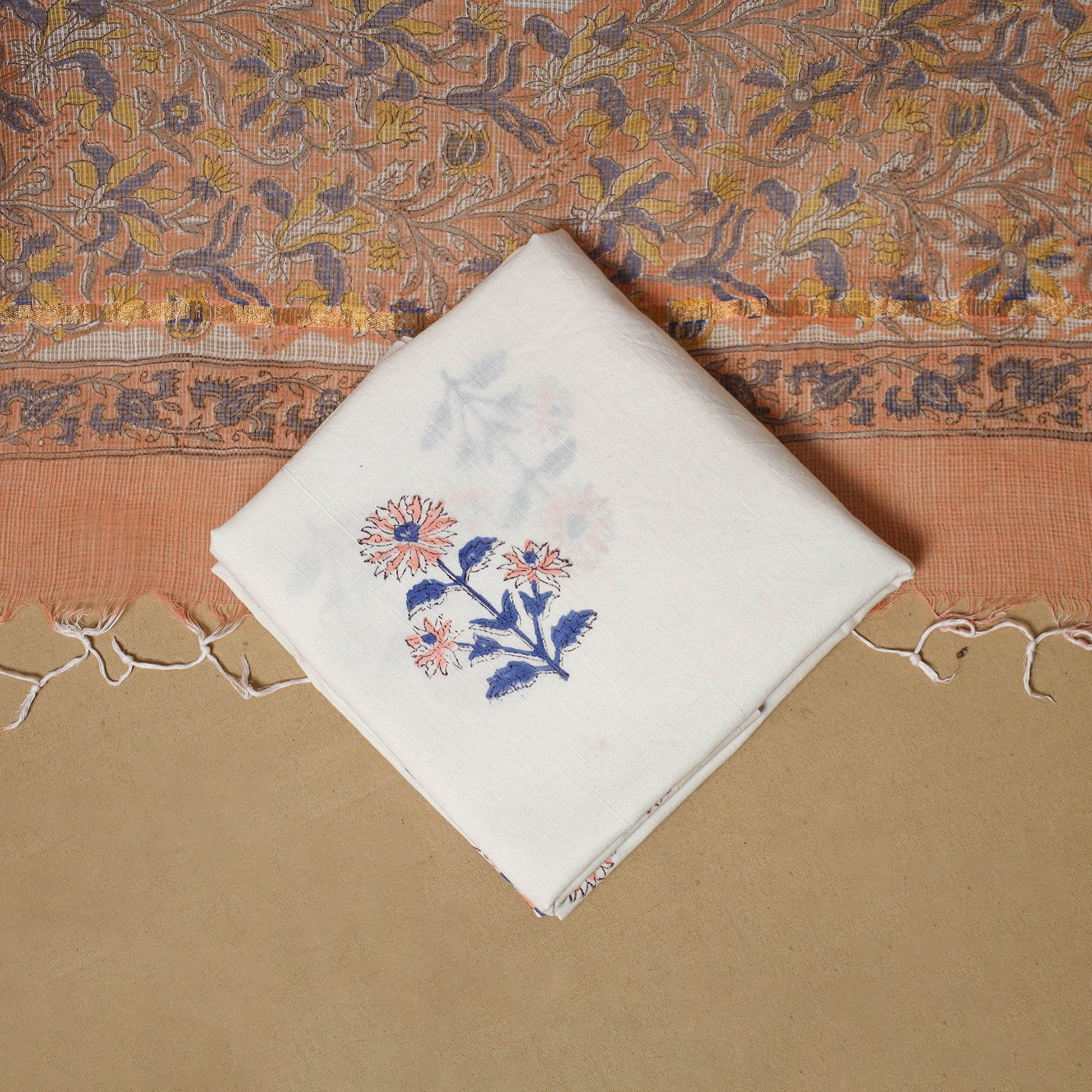 3pc Block Print Kota Doria Cotton Sanganeri Unstitched Dress Material 23