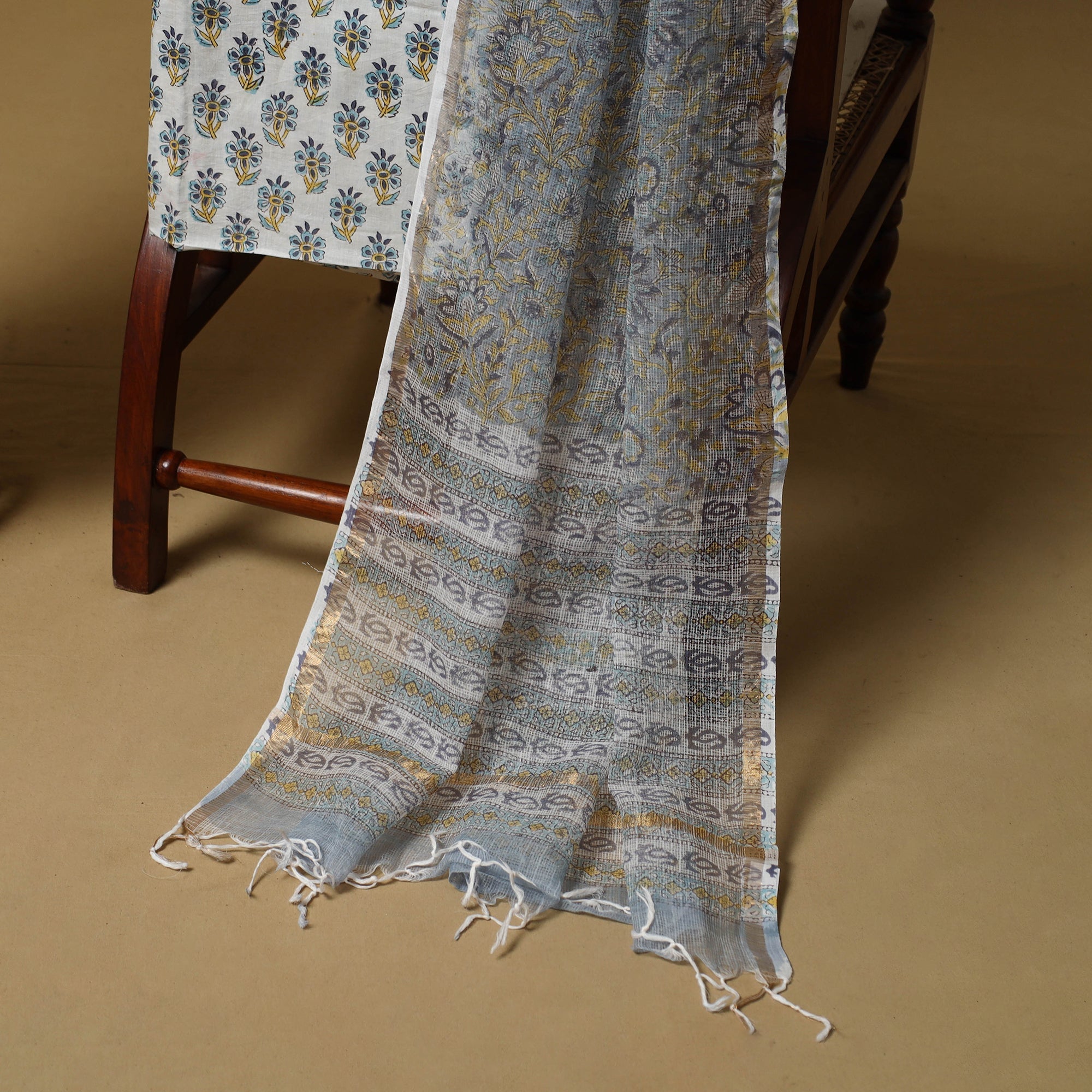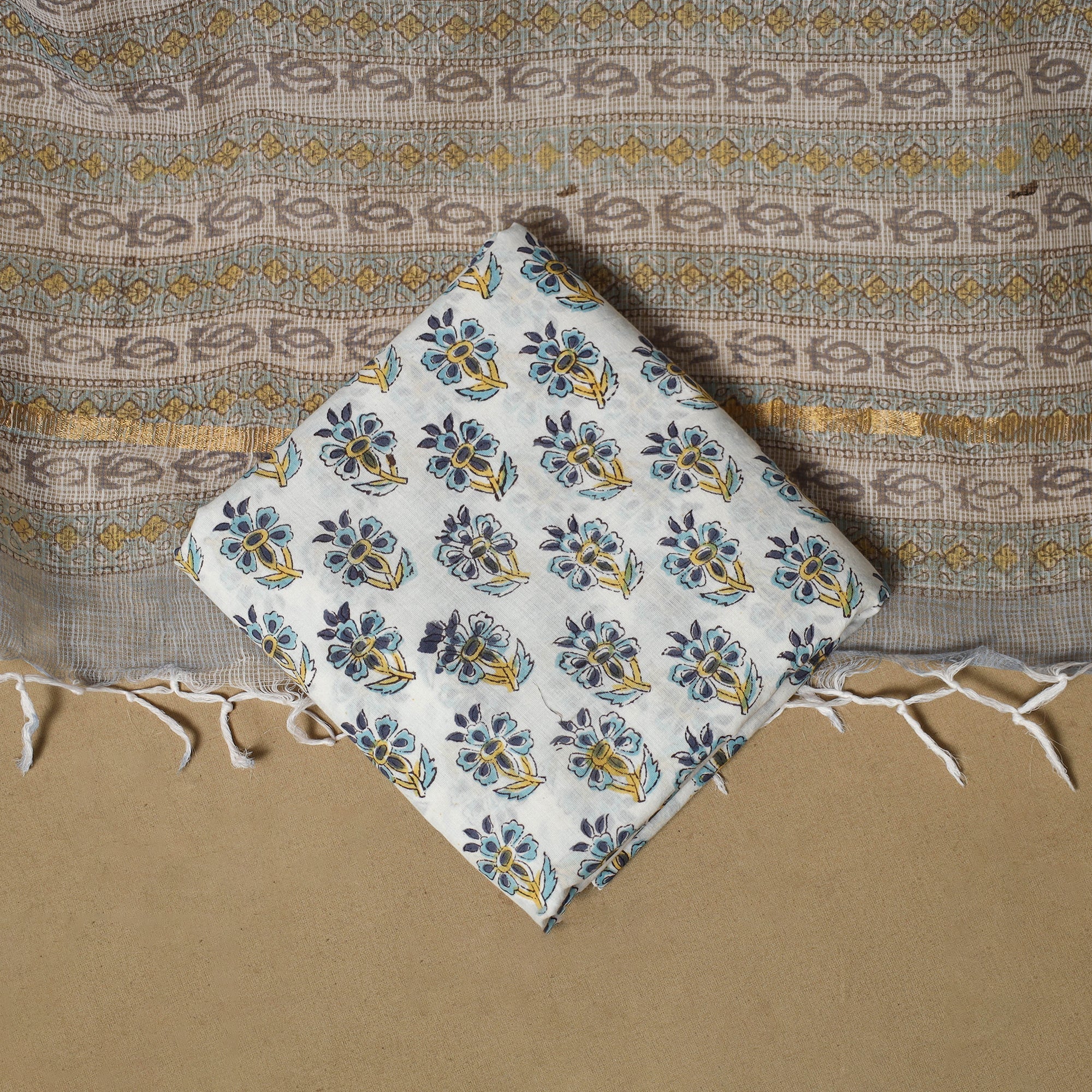 3pc Block Print Kota Doria Cotton Sanganeri Unstitched Dress Material 27