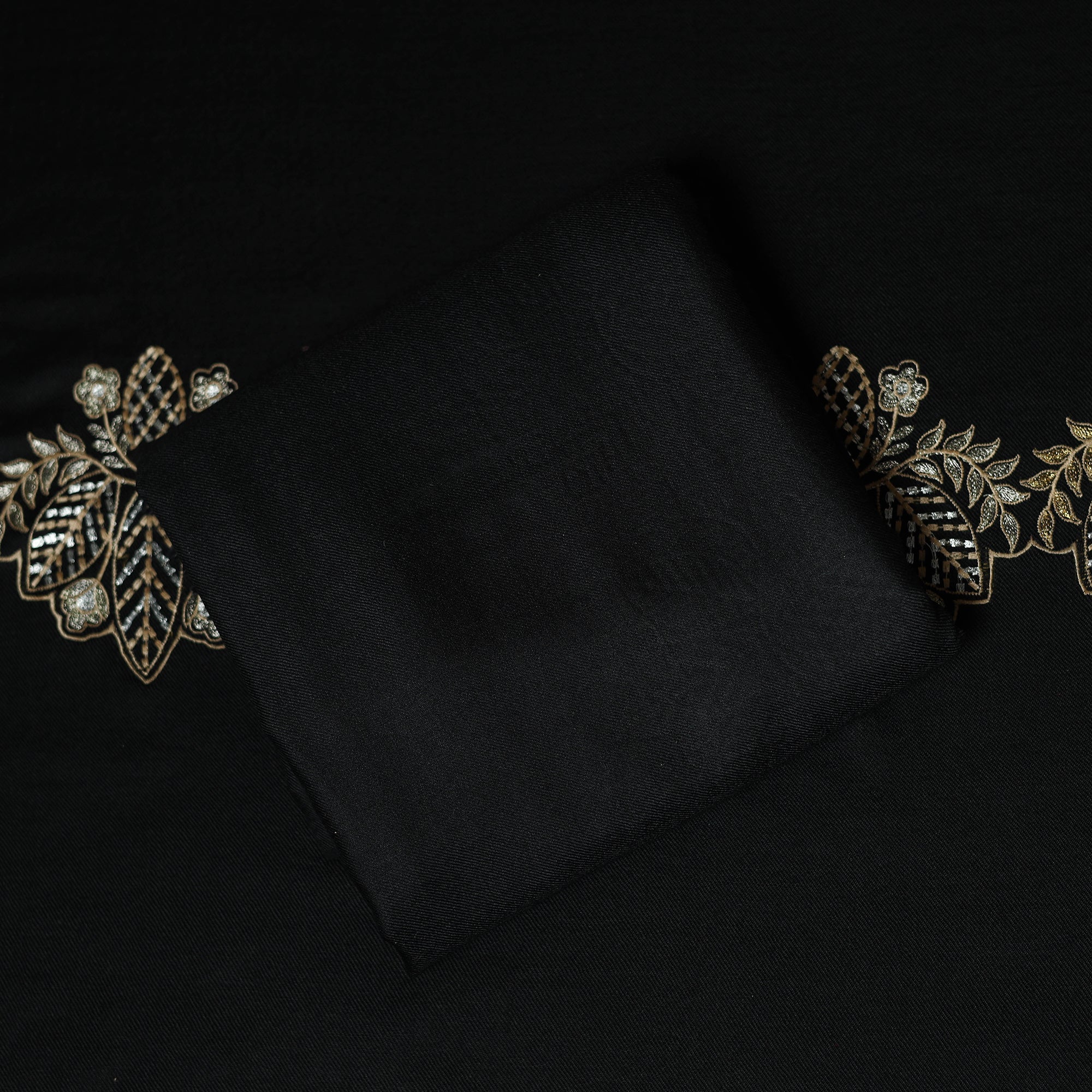 Black 3pc chain stitch embroidered merino wool unstitched dress material is perfect for elegant winter wear. Made from fine merino wool, it offers warmth, comfort and a rich texture. The set includes fabric for the top, bottom and dupatta is beautifully detailed with intricate embroidery. Ideal for stitching into stylish suits for casual or festive occasions, it’s a graceful and cozy choice for the winter season.