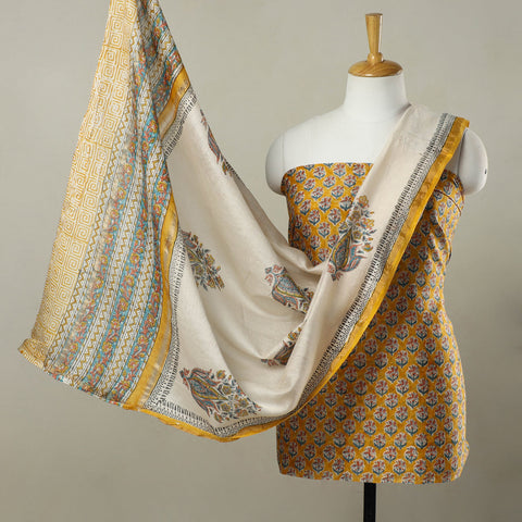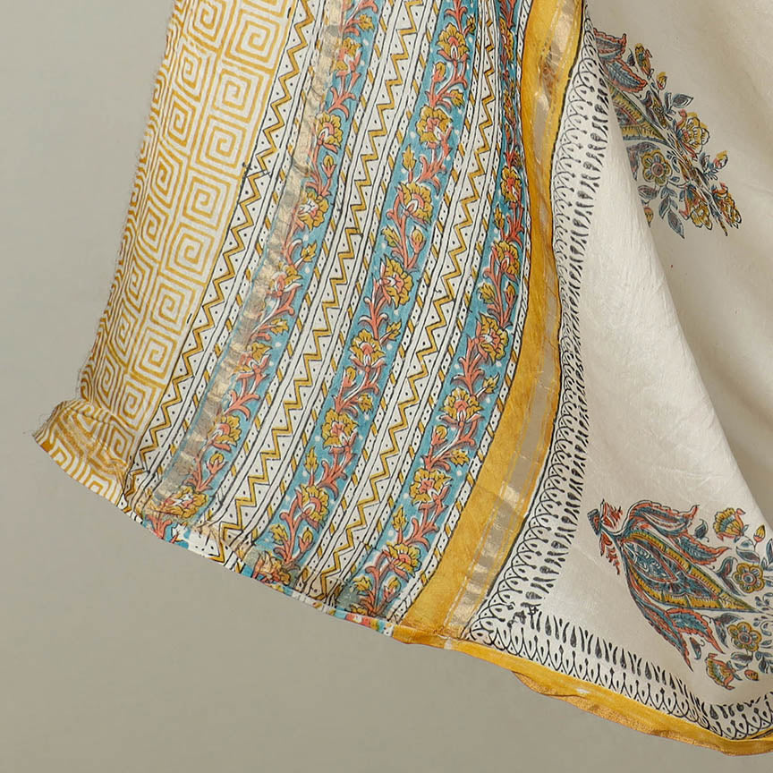 Yellow - Hand Block Print Chanderi Silk Sanganeri Fabric 02