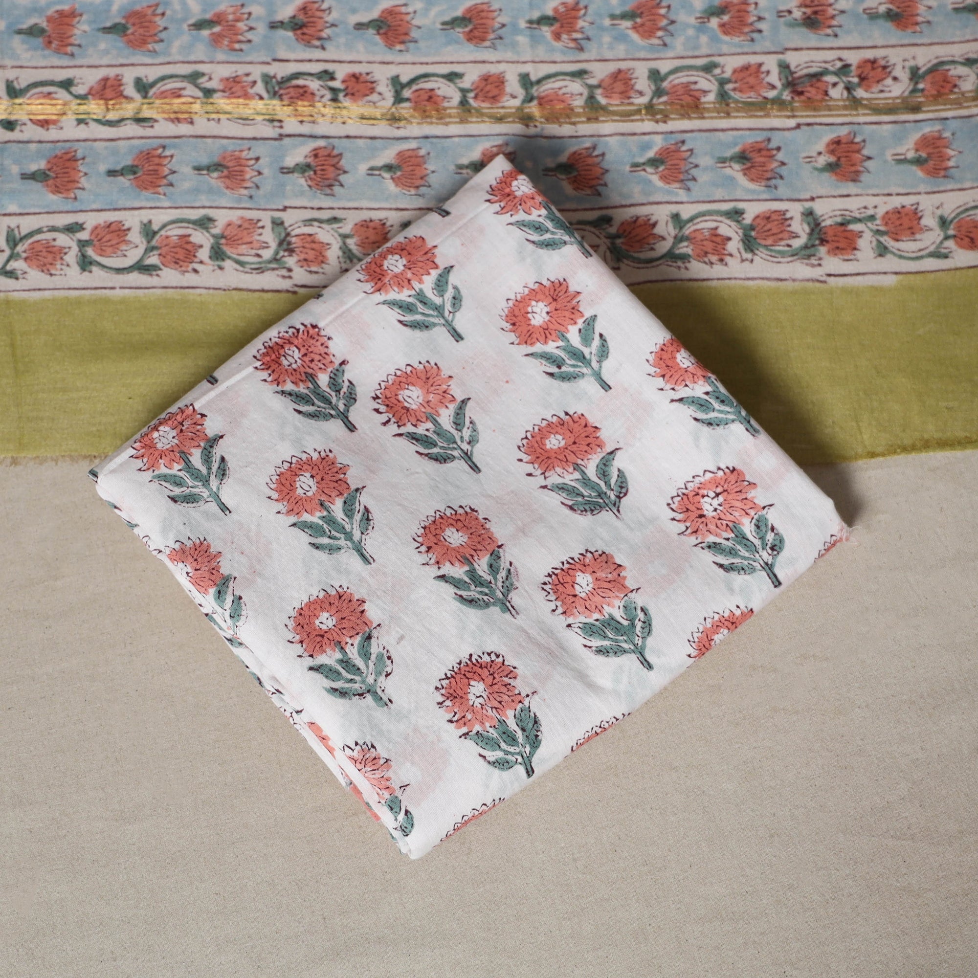 Hand-stamped block prints crafted by artisans using age-old techniques.