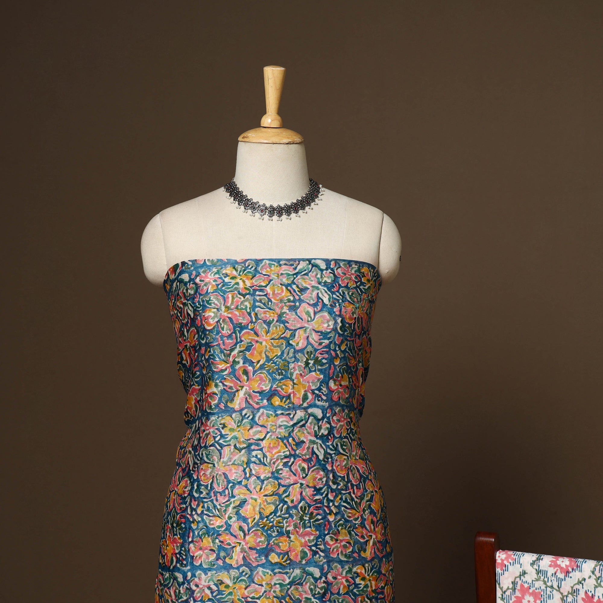 Blue 3pc sanganeri hand block print dress material is crafted from chanderi silk-cotton fabric and includes a kurta, a matching dupatta and a cotton bottom. Adorned with fine floral motifs from Rajasthan, each piece is made using the traditional hand block printing technique, where artisans use hand-carved wooden blocks dipped in VAT dyes to imprint intricate designs perfect for festive and everyday elegance.