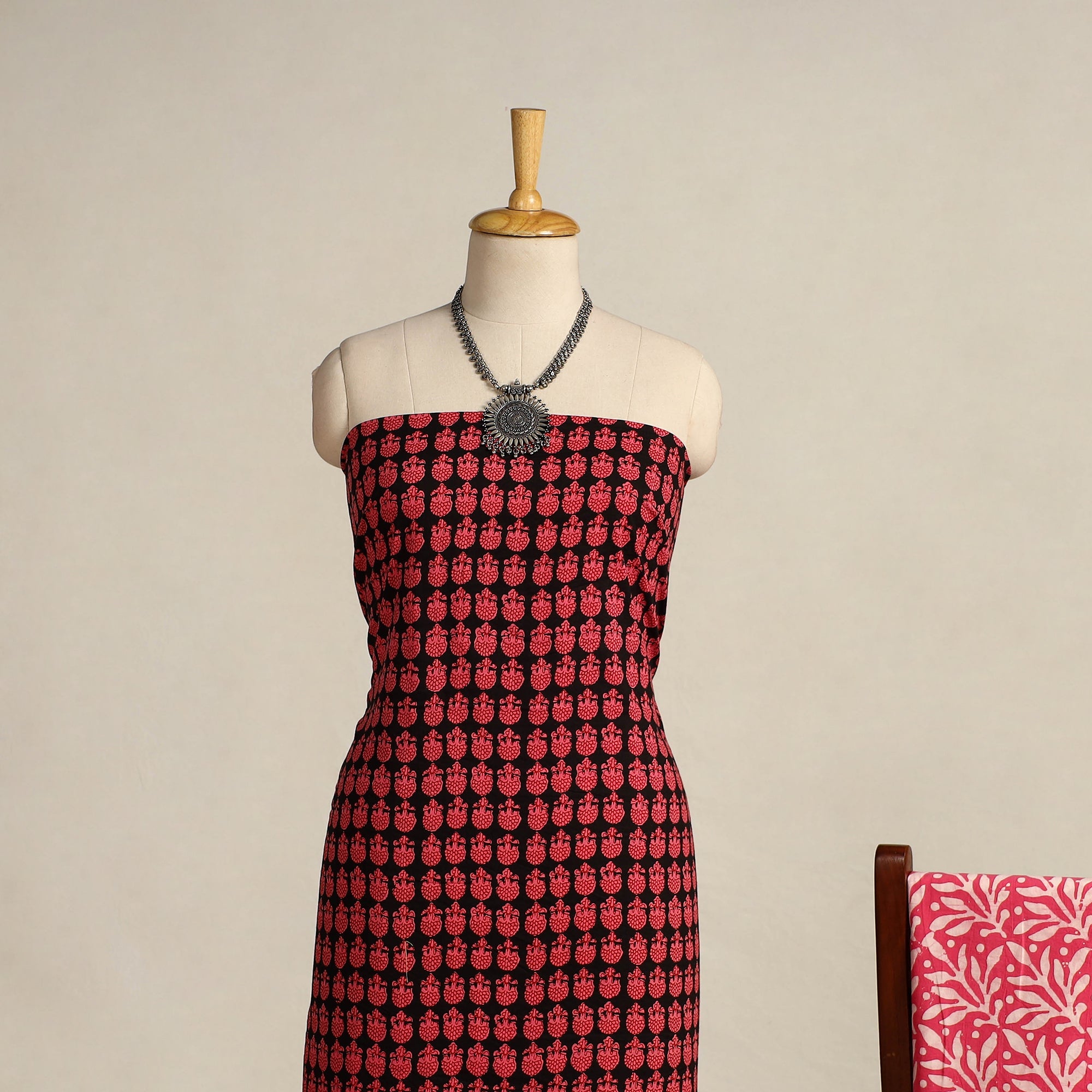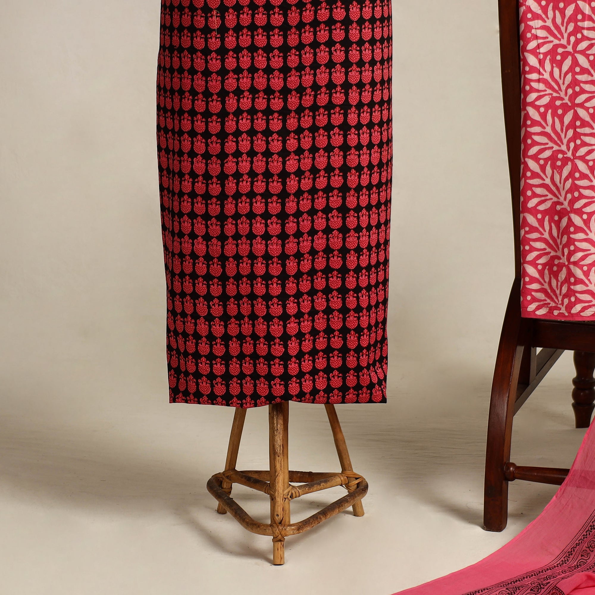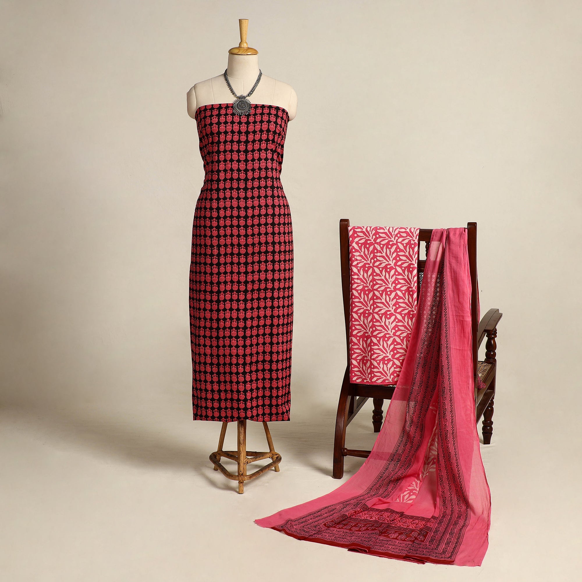 This pink 3-piece cotton set, crafted in Madhya Pradesh, celebrates the richness of India’s age-old textile traditions. The kurta showcases bagh screen printing, known for its classic paisley motifs. The bottom complements it with traditional hand batik work, a wax-resist dyeing technique passed down through generations. The mul cotton dupatta brings both crafts together in one harmonious piece. Ideal for festive gatherings or everyday traditional wear.