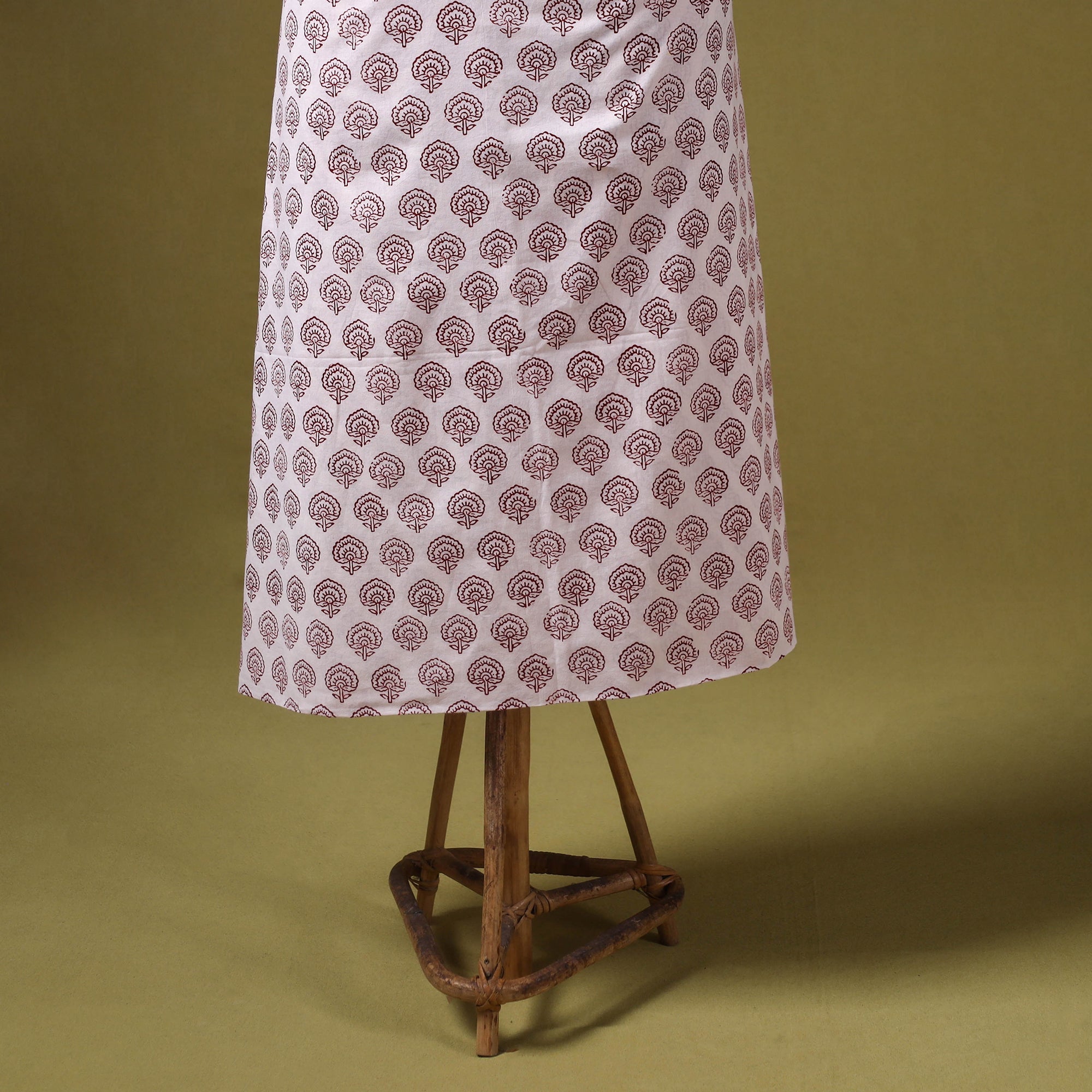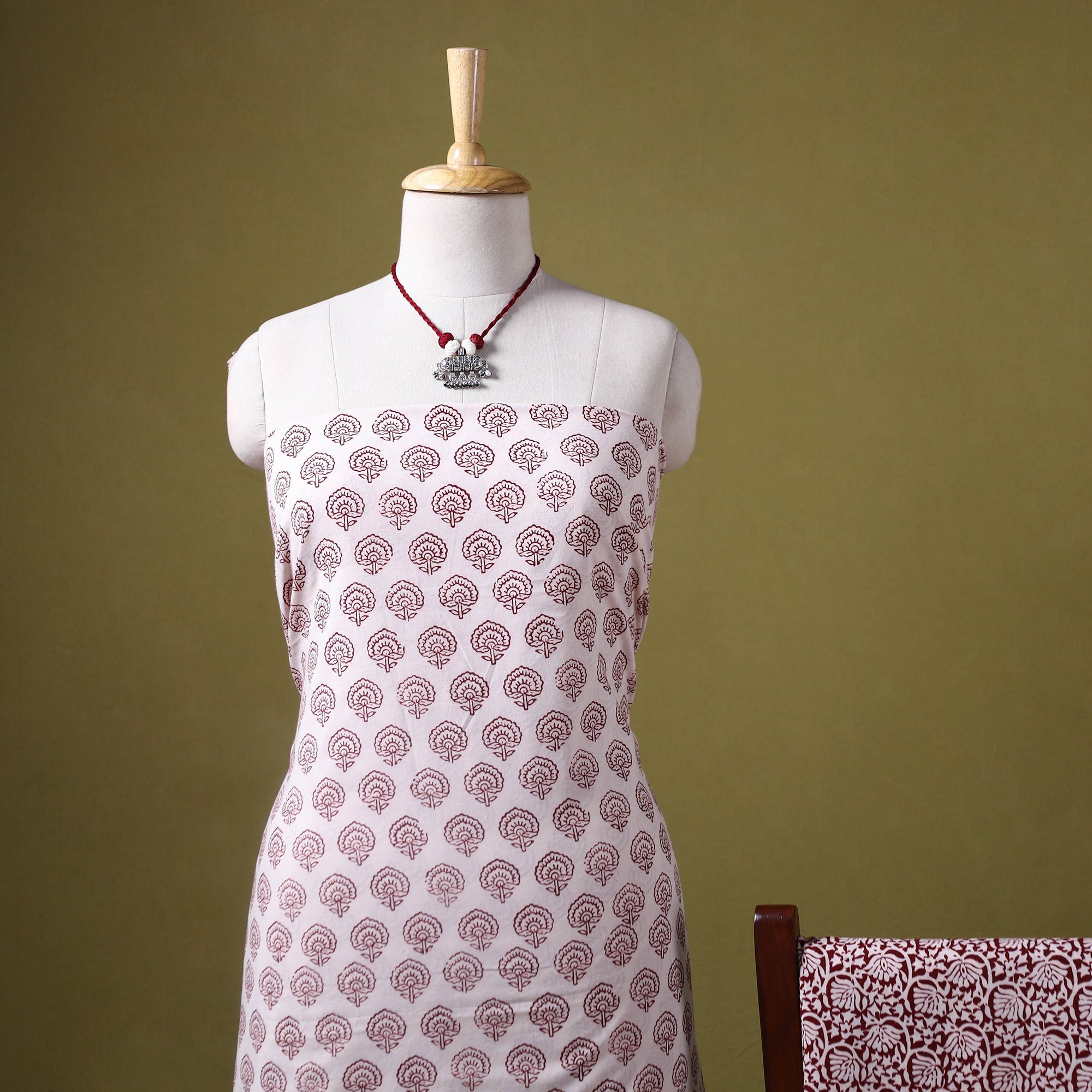 Elevate your wardrobe with this 3pc beige bagh print dress material set, handcrafted in Madhya Pradesh. Made using traditional hand block printing and natural dyes, the set features intricate patterns. The kurta and bottom are crafted from breathable cotton for all-day comfort, and it comes with a lightweight kota doria dupatta. The set also includes a matching necklace and earrings to complete your look. ideal for casual gatherings, workwear, or relaxed weekend dressing.