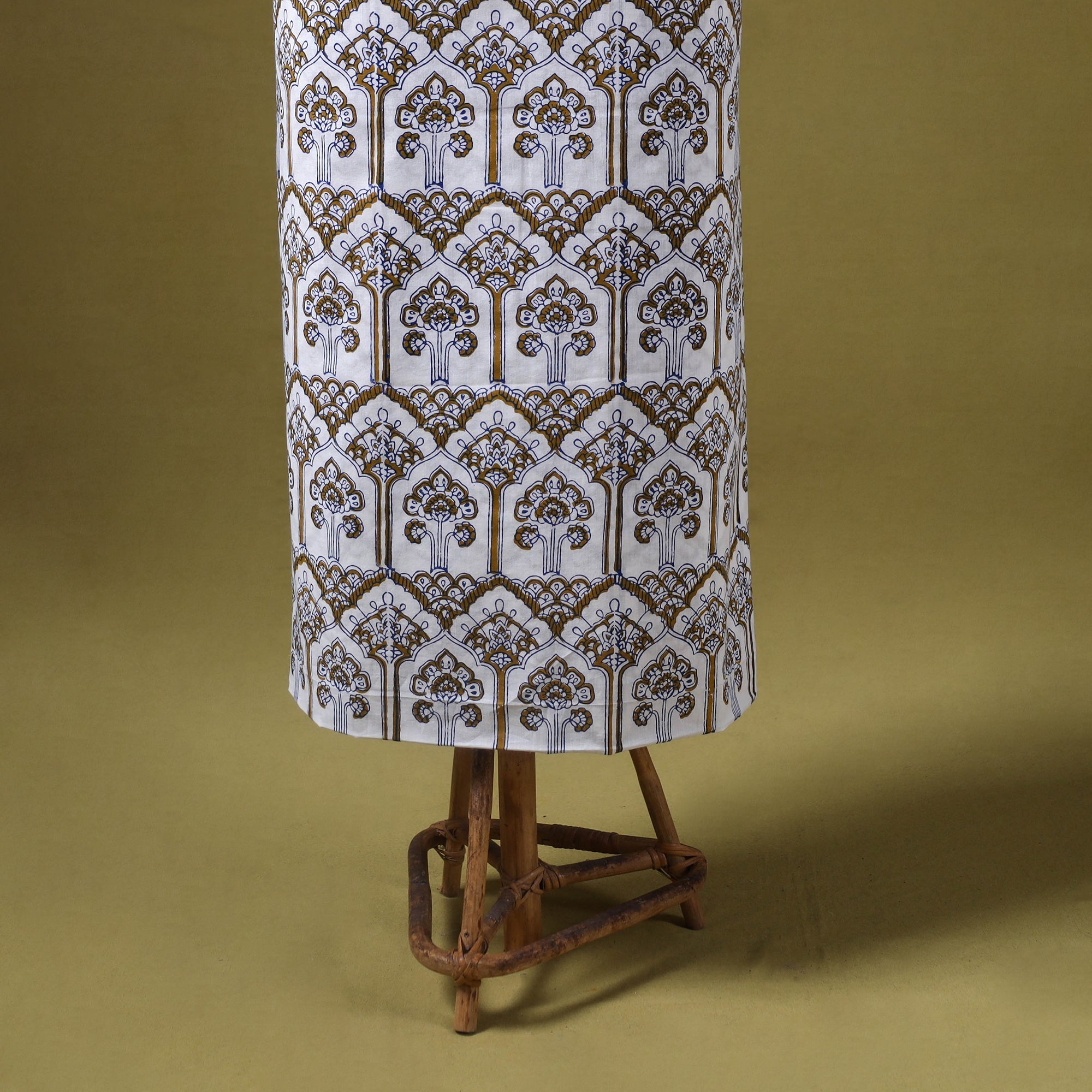 Elevate your wardrobe with this 3pc white bagh print dress material set, handcrafted in Madhya Pradesh. Made using traditional hand block printing and natural dyes, the set showcases intricate patterns. The kurta, bottom, and dupatta are crafted from breathable cotton for all-day comfort. It also comes with a matching necklace and earrings, adding a touch of handmade charm. Ideal for casual gatherings, workwear, or relaxed weekend dressing.