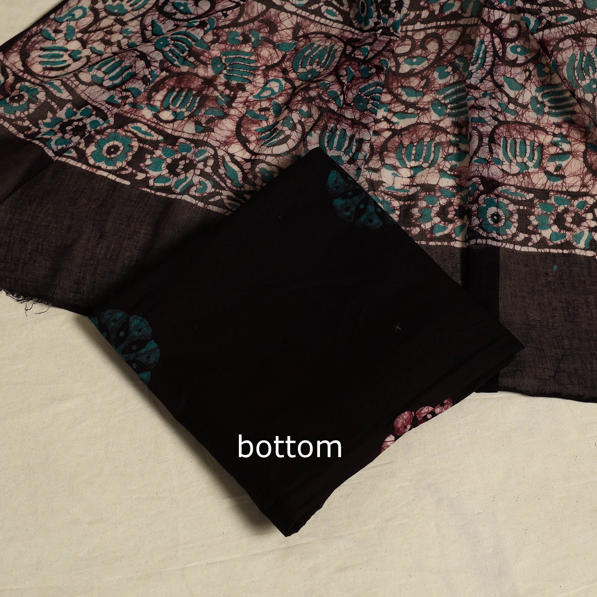 Celebrate craft traditions with this maroon 3pc batik block print cotton dress material from Madhya Pradesh. Crafted using the centuries-old wax-resist dyeing technique, each set includes a kurta piece, matching bottom, and a mul cotton dupatta. The traditional designs and motifs in batik are often passed down through generations. This set is perfect for festive wear or everyday ethnic outfits.