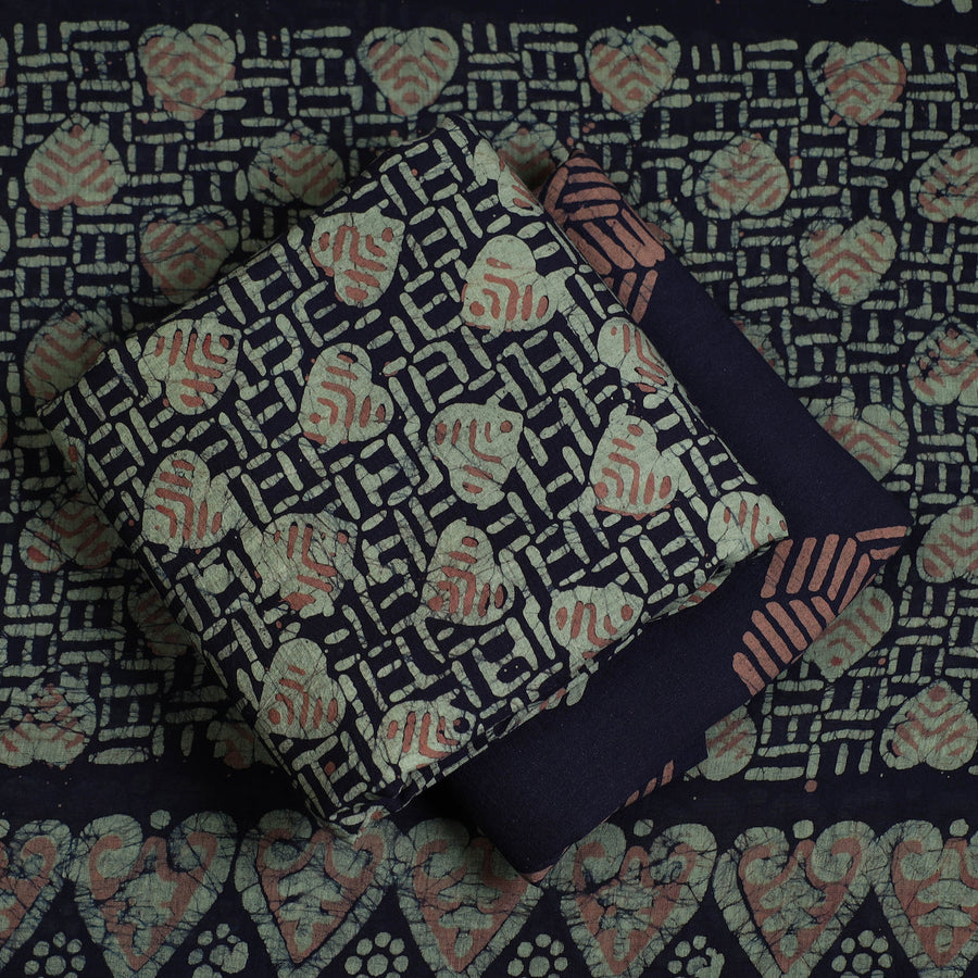 Green - Cotton Hand Block Batik Print 3pc Unstitched Dress Material 02