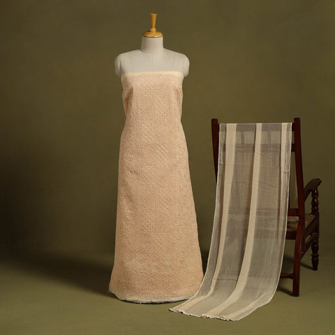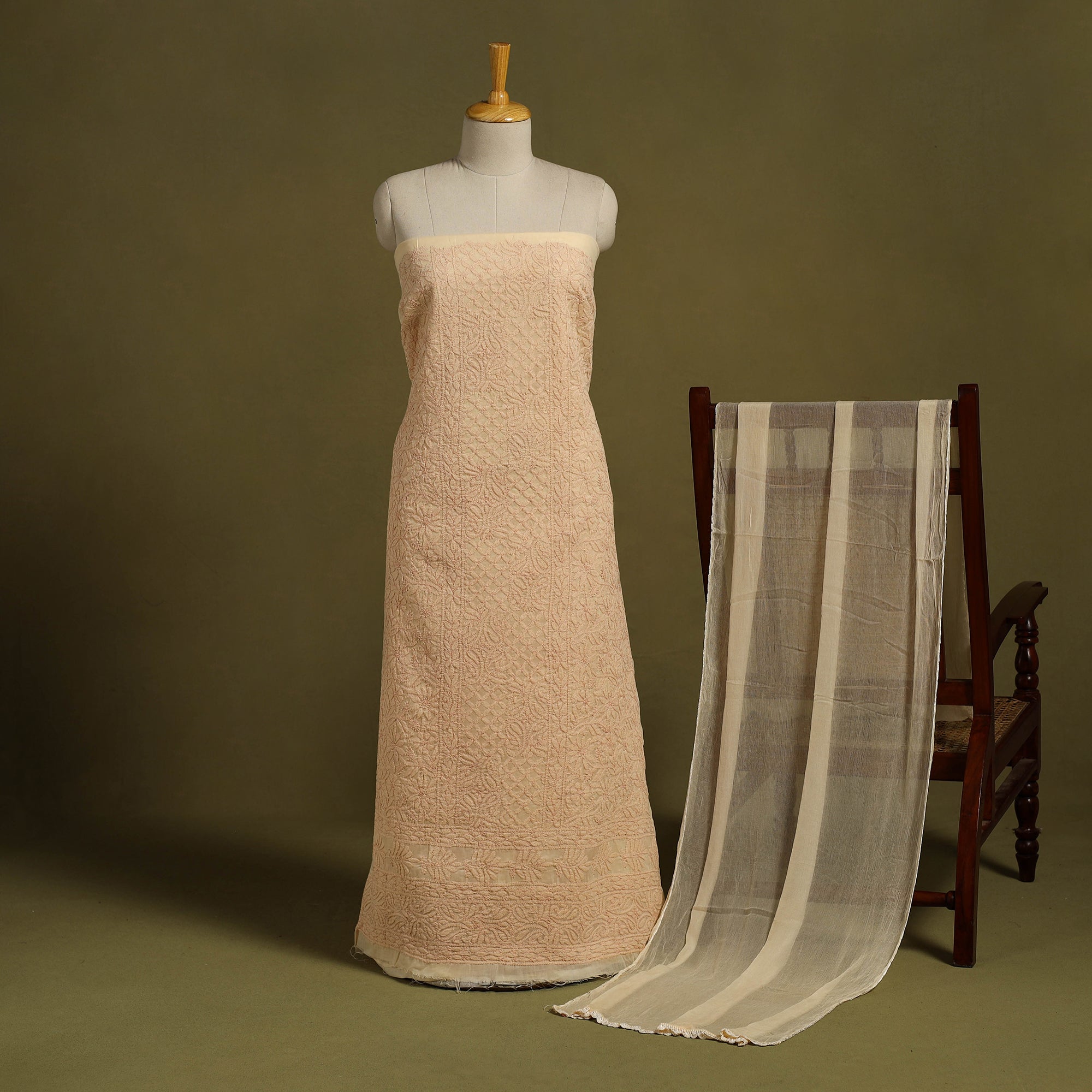 Drape yourself in elegance with this 3pc brown lucknow chikankari dress material, featuring intricate hand embroidery on soft cotton. The set includes a beautifully embroidered kurta, a matching bottom, and a delicate chiffon dupatta. Chikankari, a traditional embroidery art from Lucknow, is a testament to fine craftsmanship and cultural heritage. Lightweight and breathable, this ensemble is perfect for festive celebrations or casual styling.