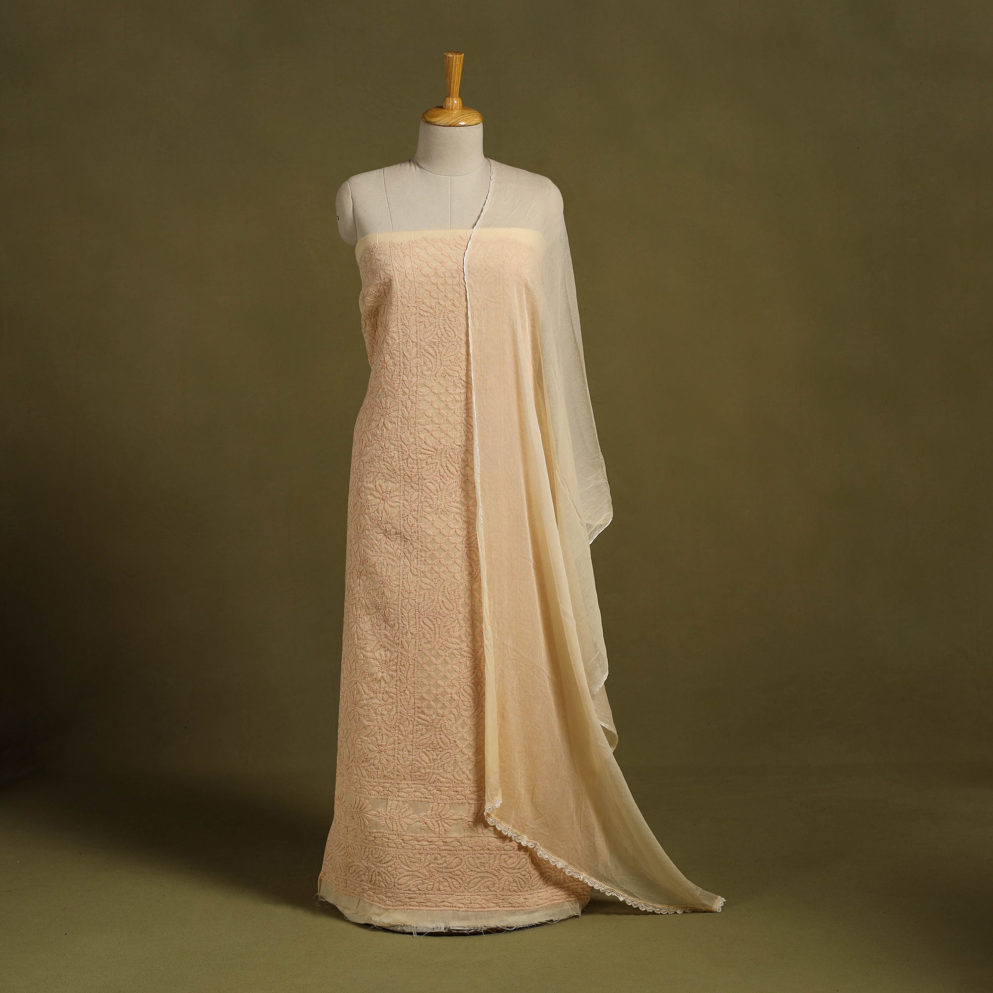 Lucknowi Hand Embroidered Chikankari Georgette 3pc Unstitched Dress Material 14