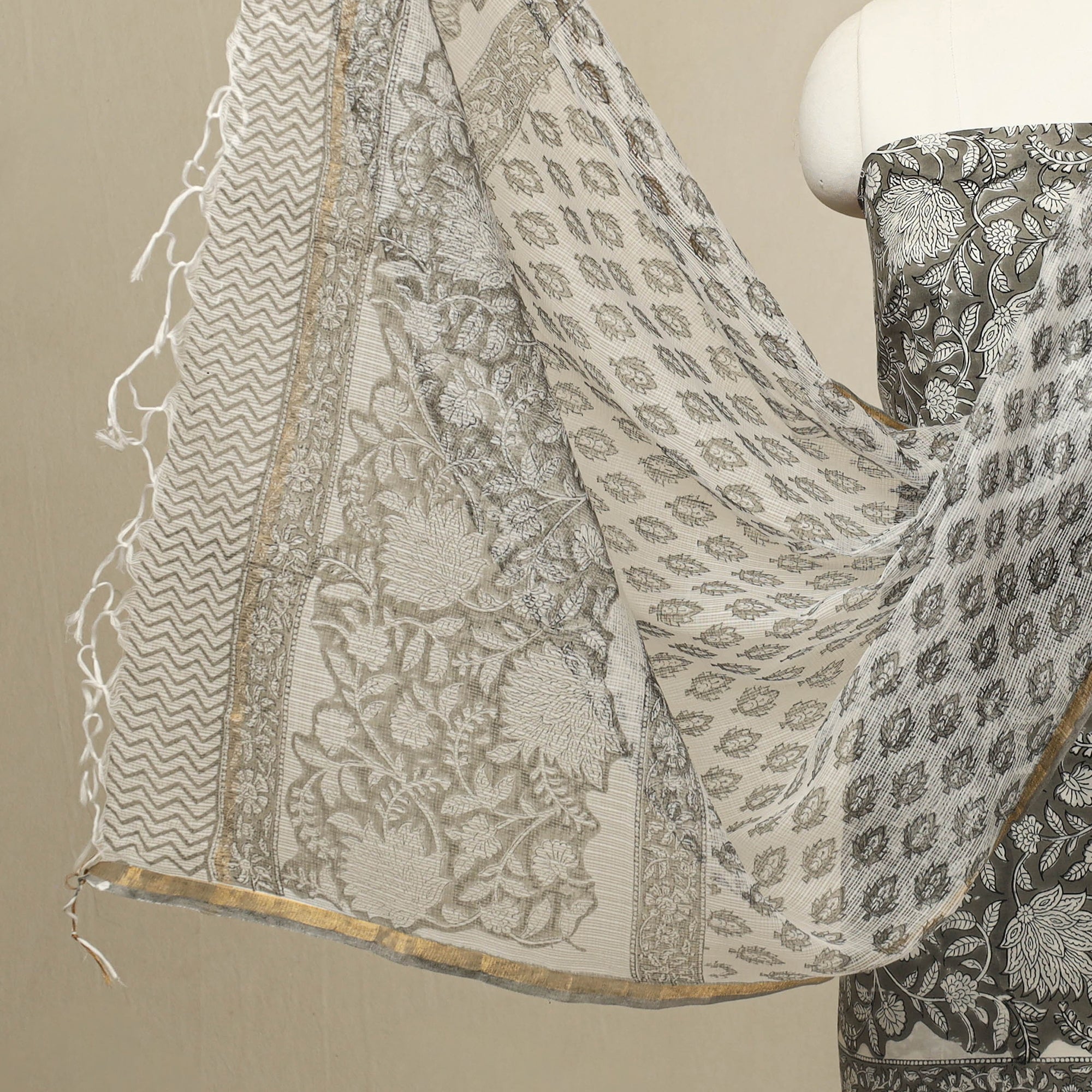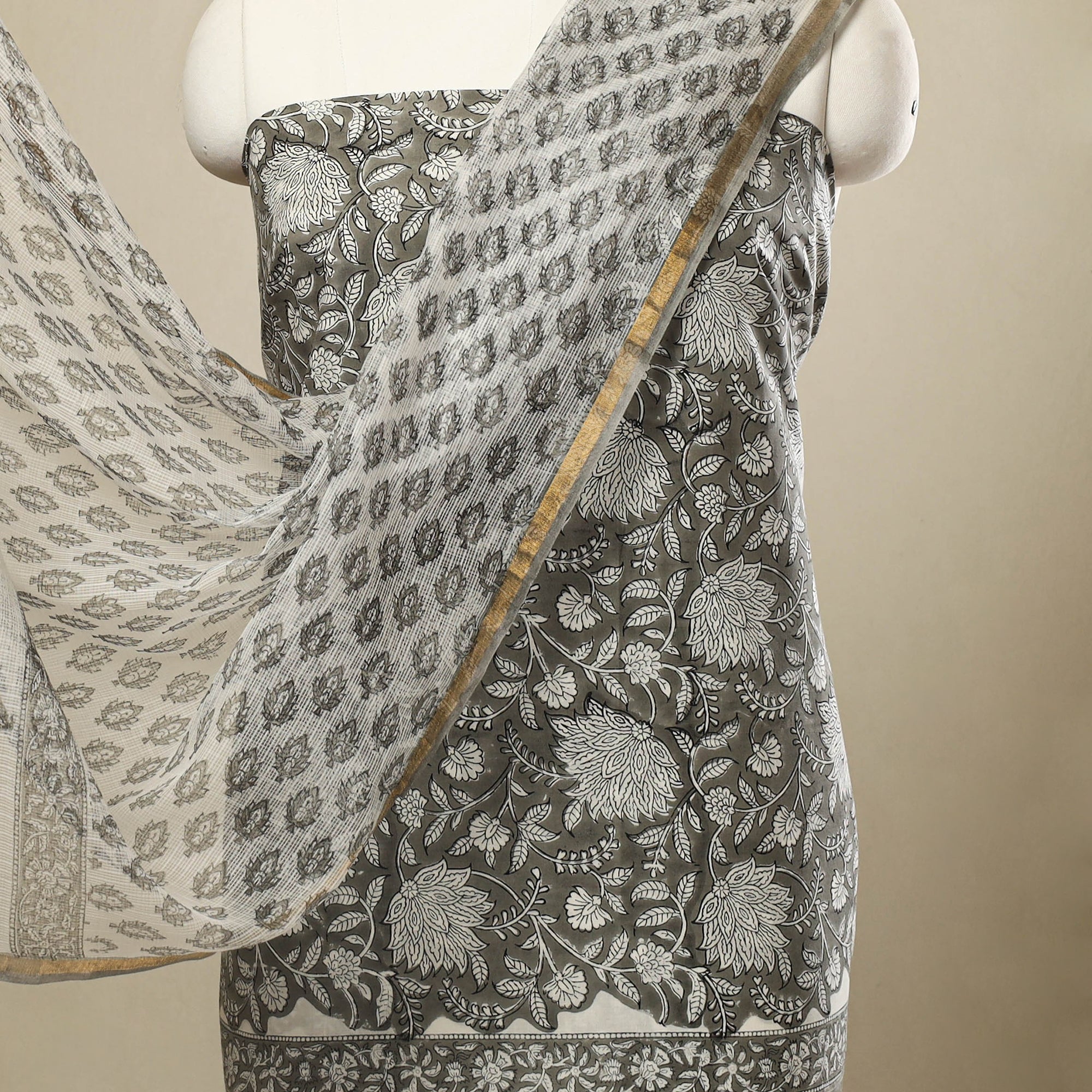 Add a timeless charm to your wardrobe with this gorgeous 3pc grey sanganeri cotton dress material. Crafted with love using centuries-old block printing from Sanganer, near Jaipur, each piece reflects India’s artistic legacy. The colours stay vibrant thanks to bleed-free VAT dyes, and the breathable kota doria dupatta adds a delicate, breezy touch. Ideal for festive moments or graceful daily wear.
