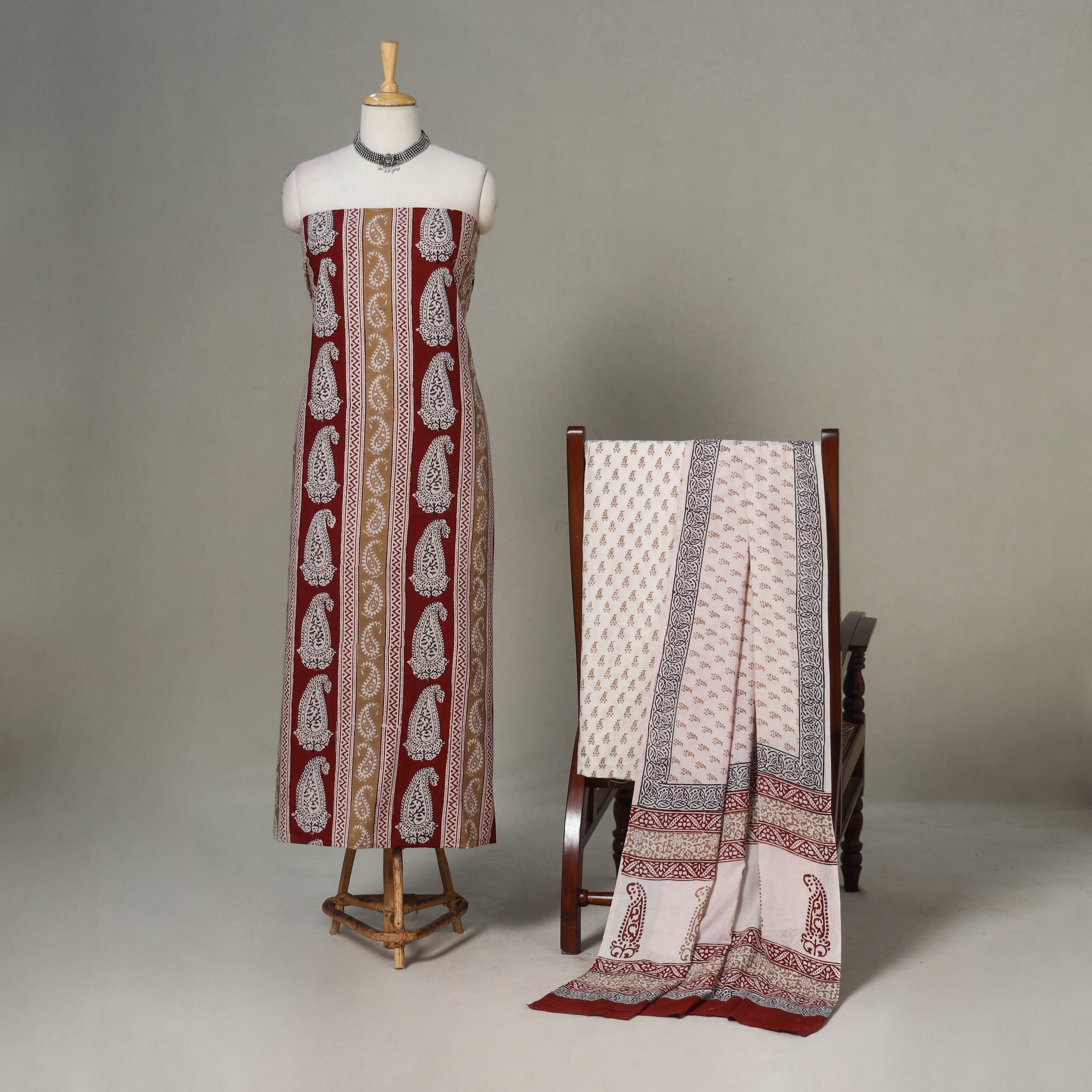 Enhance your wardrobe with this elegant red 3pc cotton bagh print suit material set. Made in Bagh, Madhya Pradesh, it features traditional hand block printing by skilled artisans. The beautiful patterns are made using natural dyes, giving every set its own special look. The soft cotton feels comfortable to wear, whether you’re heading out for a casual day, visiting family, or dressing up for a small festive get-together.