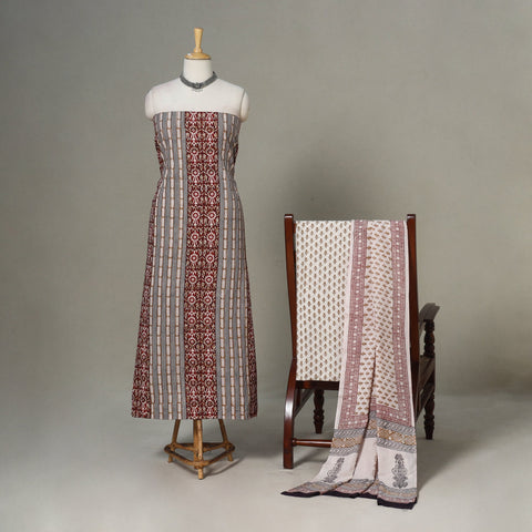 Enhance your wardrobe with this elegant beige 3pc cotton bagh print suit material set. Made in Bagh, Madhya Pradesh, it features traditional hand block printing by skilled artisans. The beautiful patterns are made using natural dyes, giving every set its own special look. The soft cotton feels comfortable to wear, whether you’re heading out for a casual day, visiting family, or dressing up for a small festive get-together.