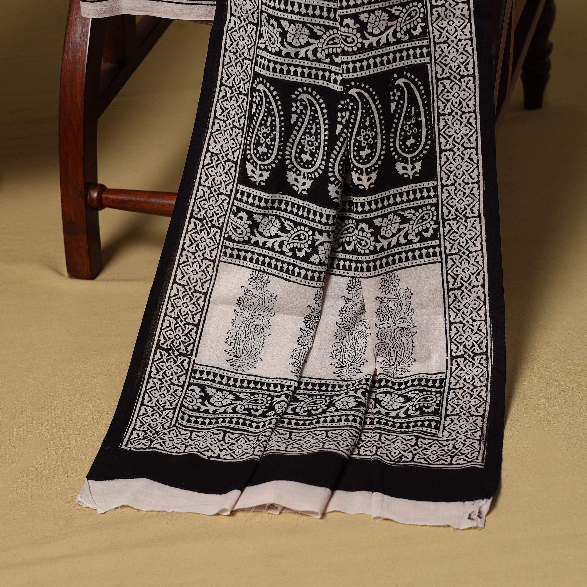 Black - Natural Dyed Cotton Hand Block Bagh Print Fabric 17