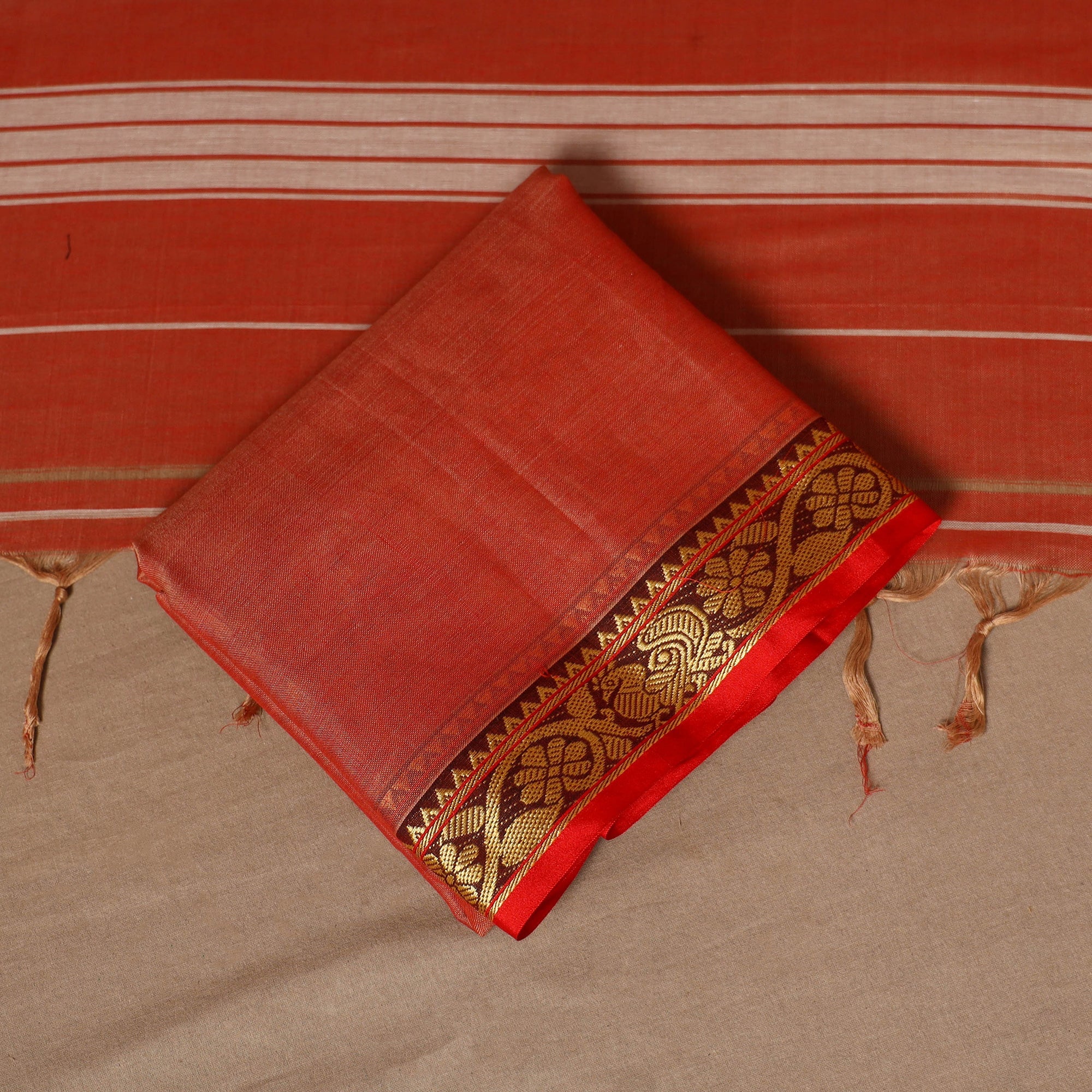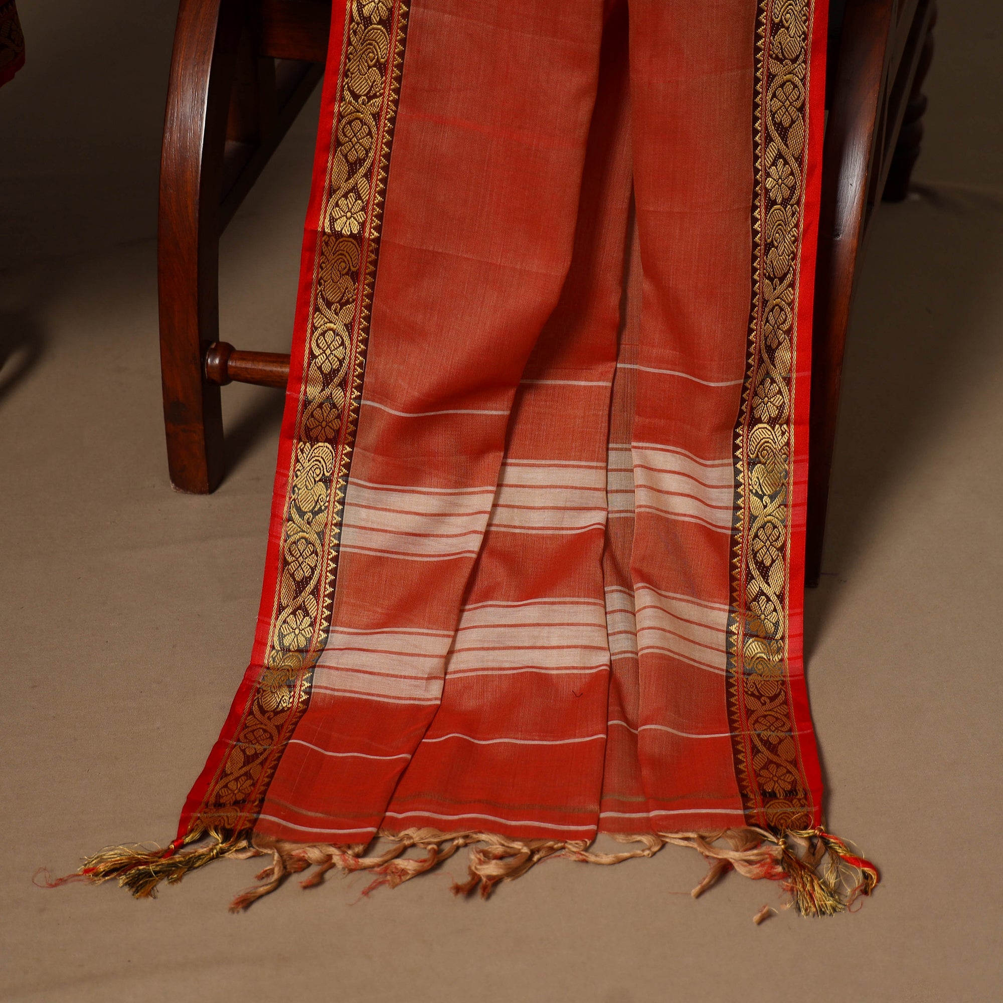 Orange - 3pc Cotton Unstitched Dharwad Dress Material with Border 09