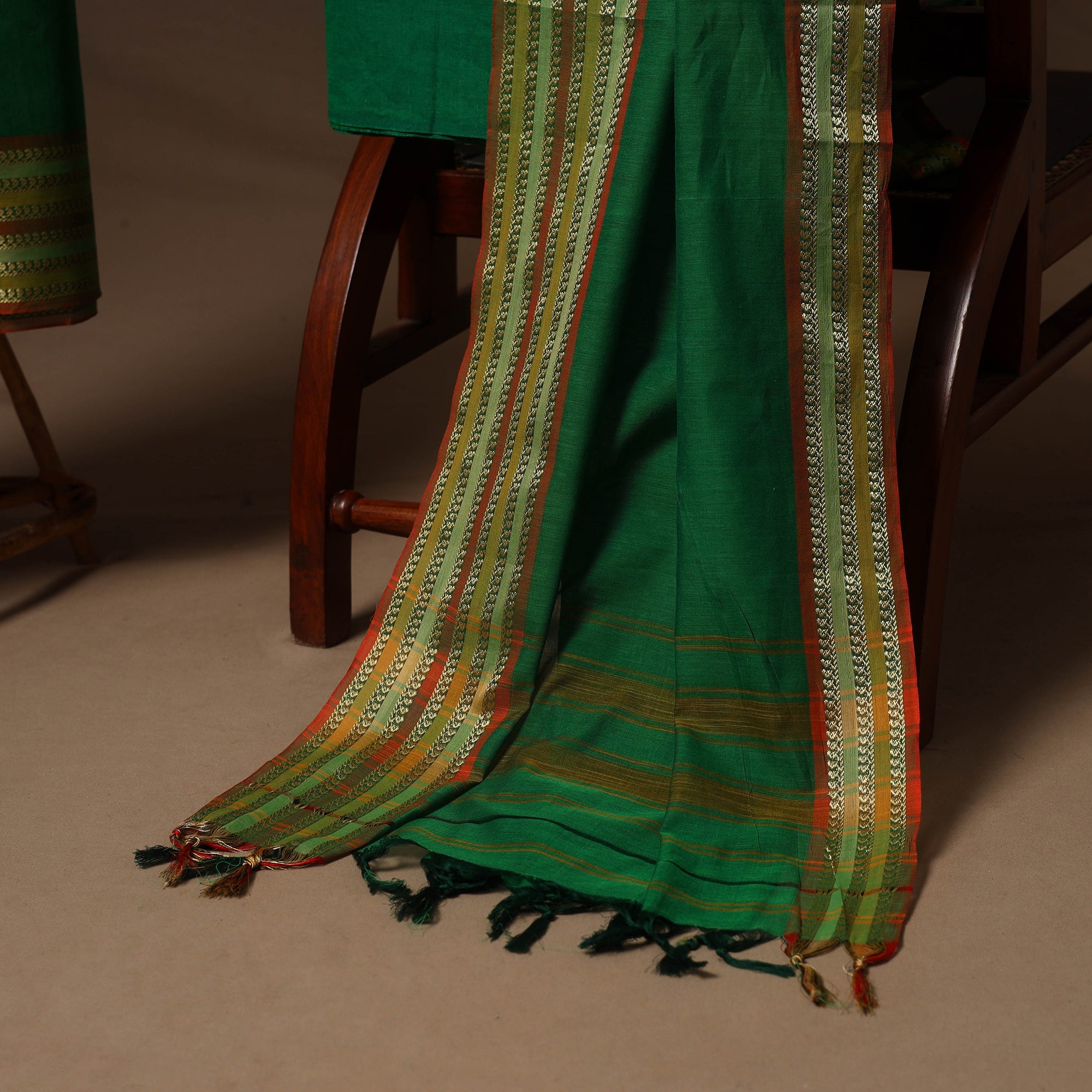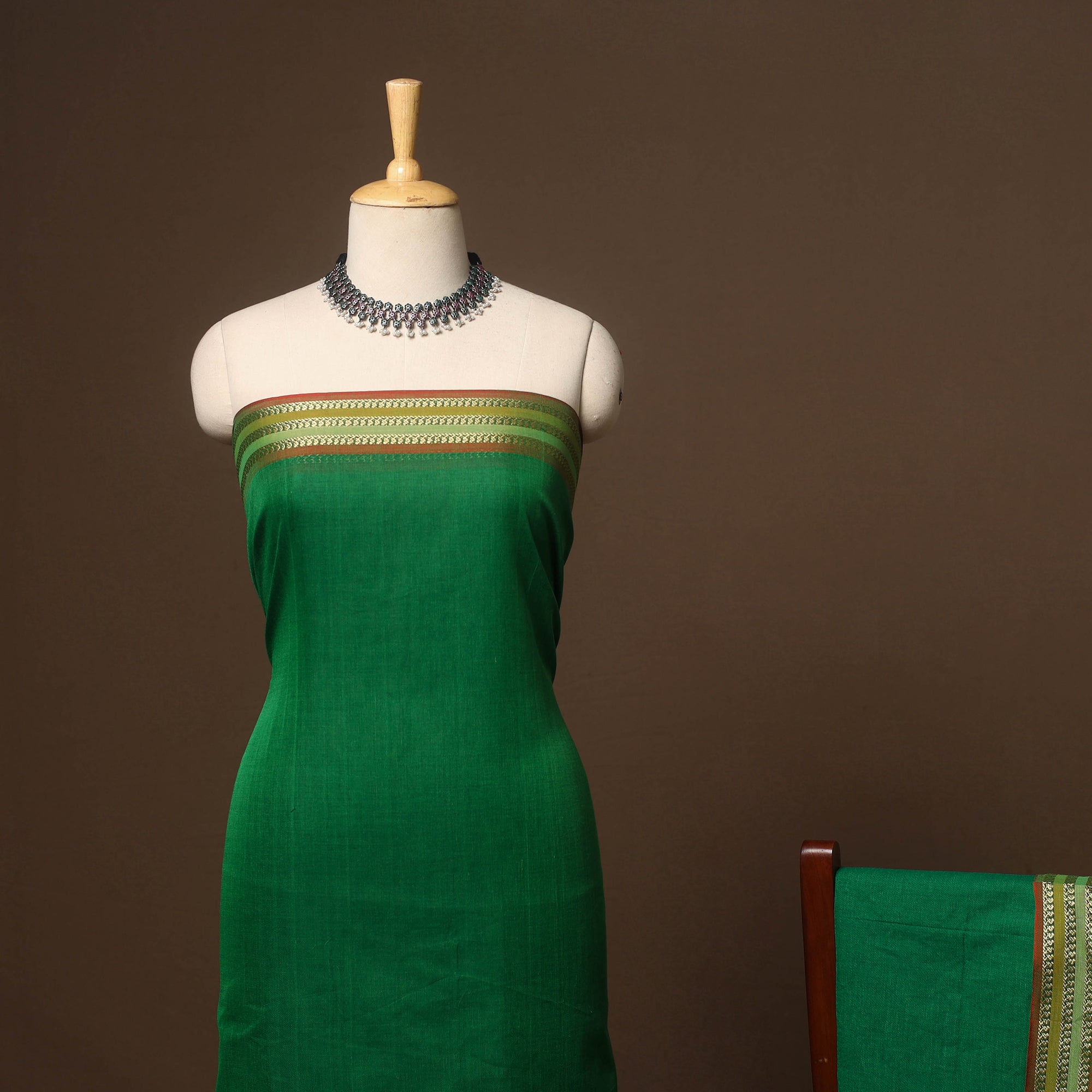 Green - 3pc Cotton Unstitched Dharwad Dress Material with Border 46