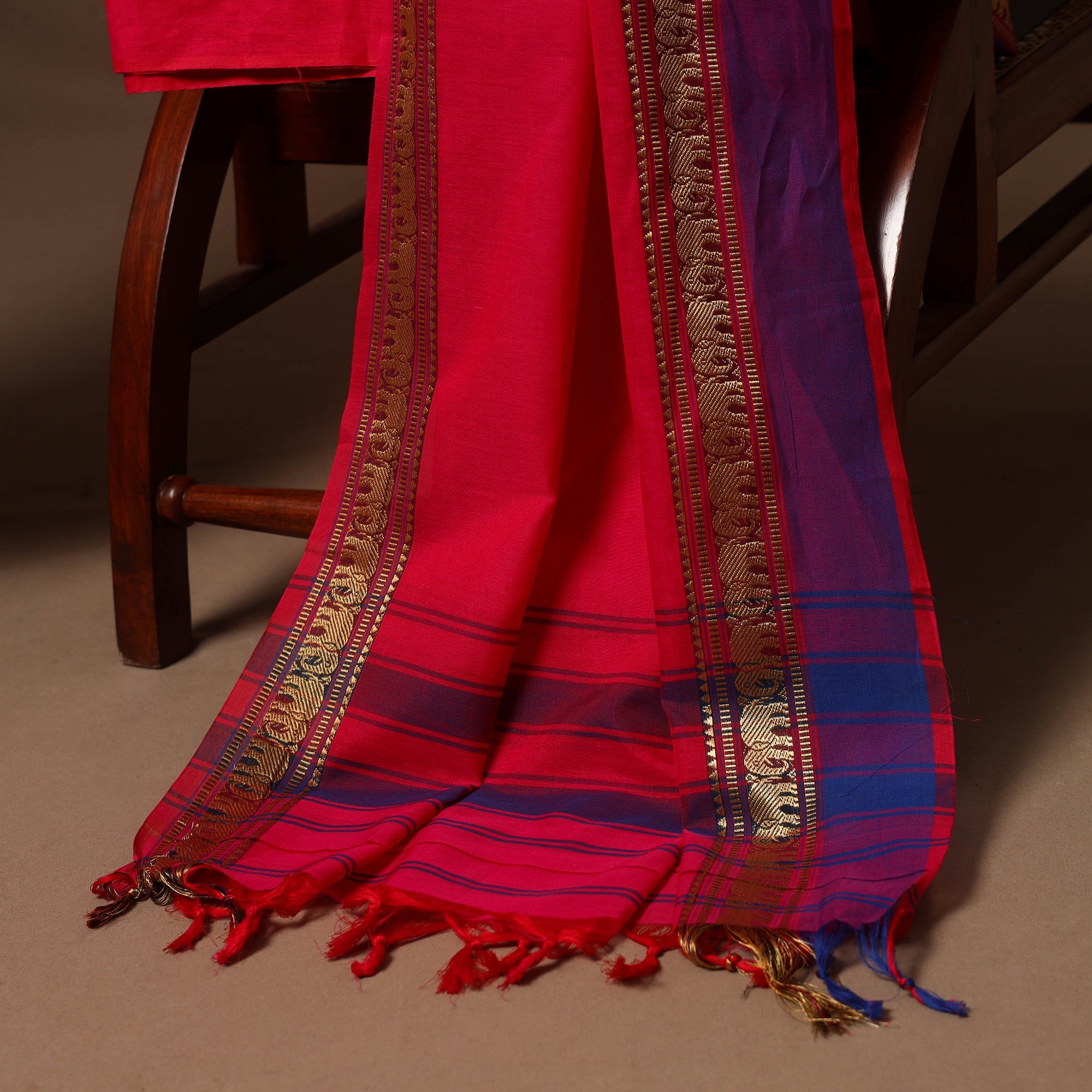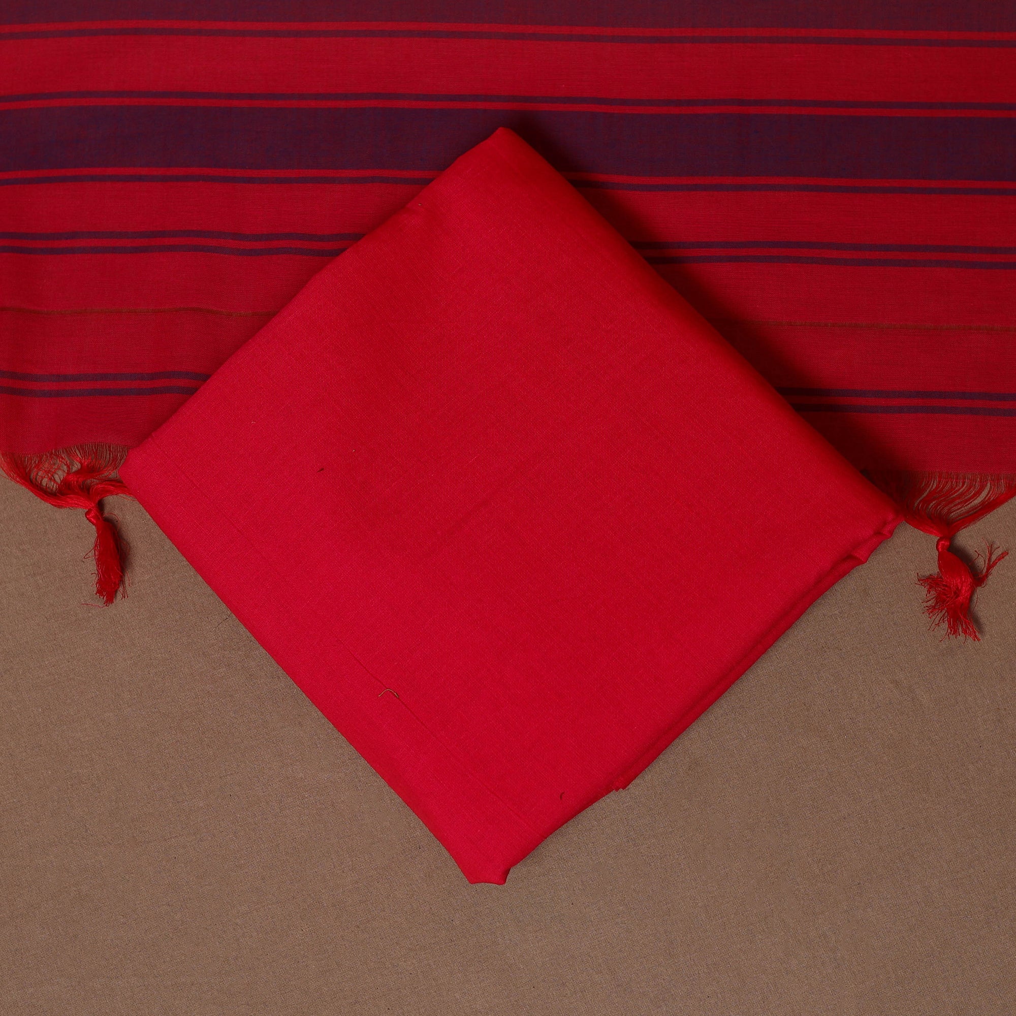 Orange - 3pc Cotton Unstitched Dharwad Dress Material with Border 09
