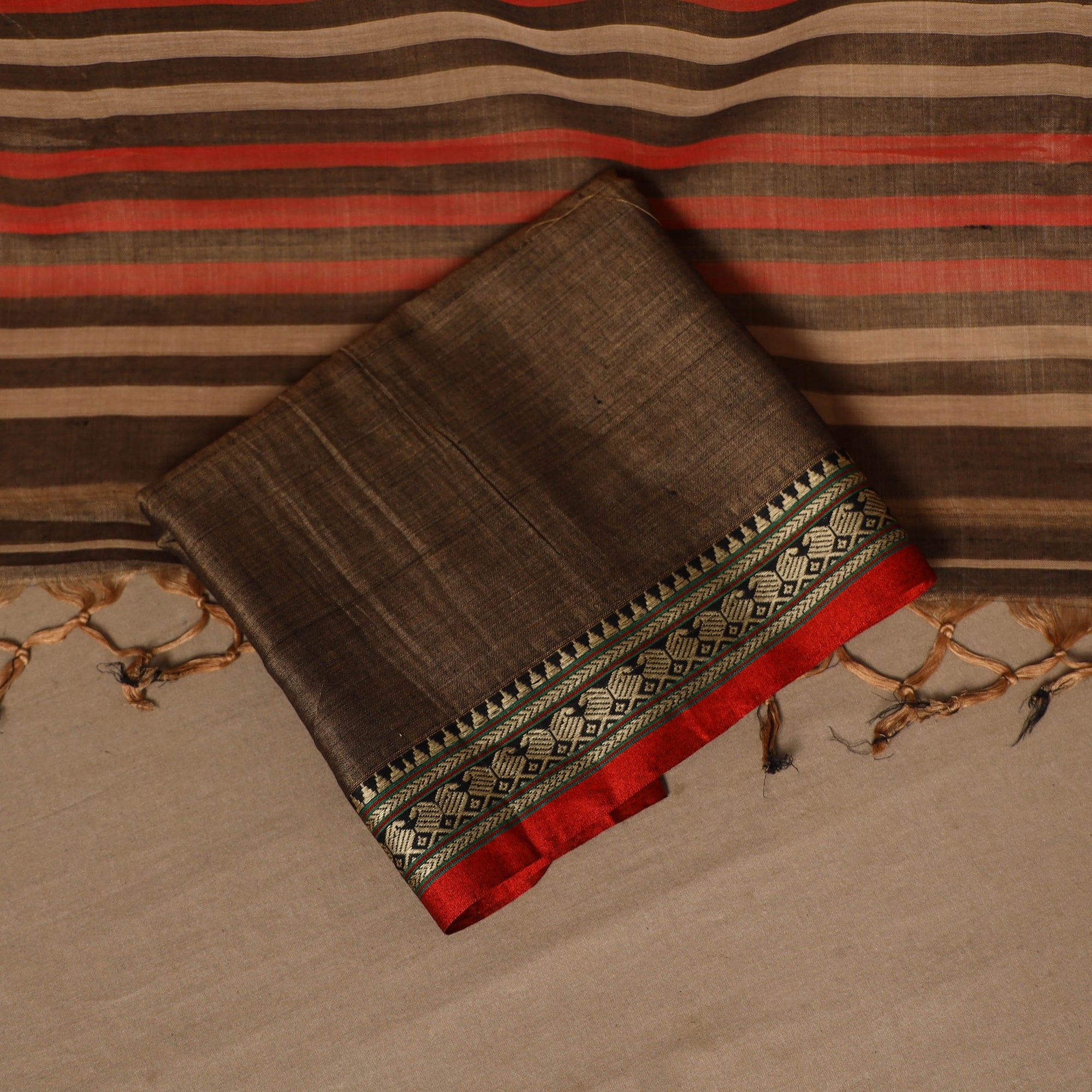 Brown 3pc cotton dress material set from Dharwad, Karnataka. This set is a tribute to the rich textile heritage of the region, featuring traditional woven border work that adds a touch of sophistication. The set includes a beautifully crafted kurta piece, a matching bottom/salwar piece, and a coordinating dupatta. Crafted with precision and care, this suit material set offers both style and comfort. Whether you're attending a festive occasion or a casual gathering, this ensemble is sure to make a lasting impression.