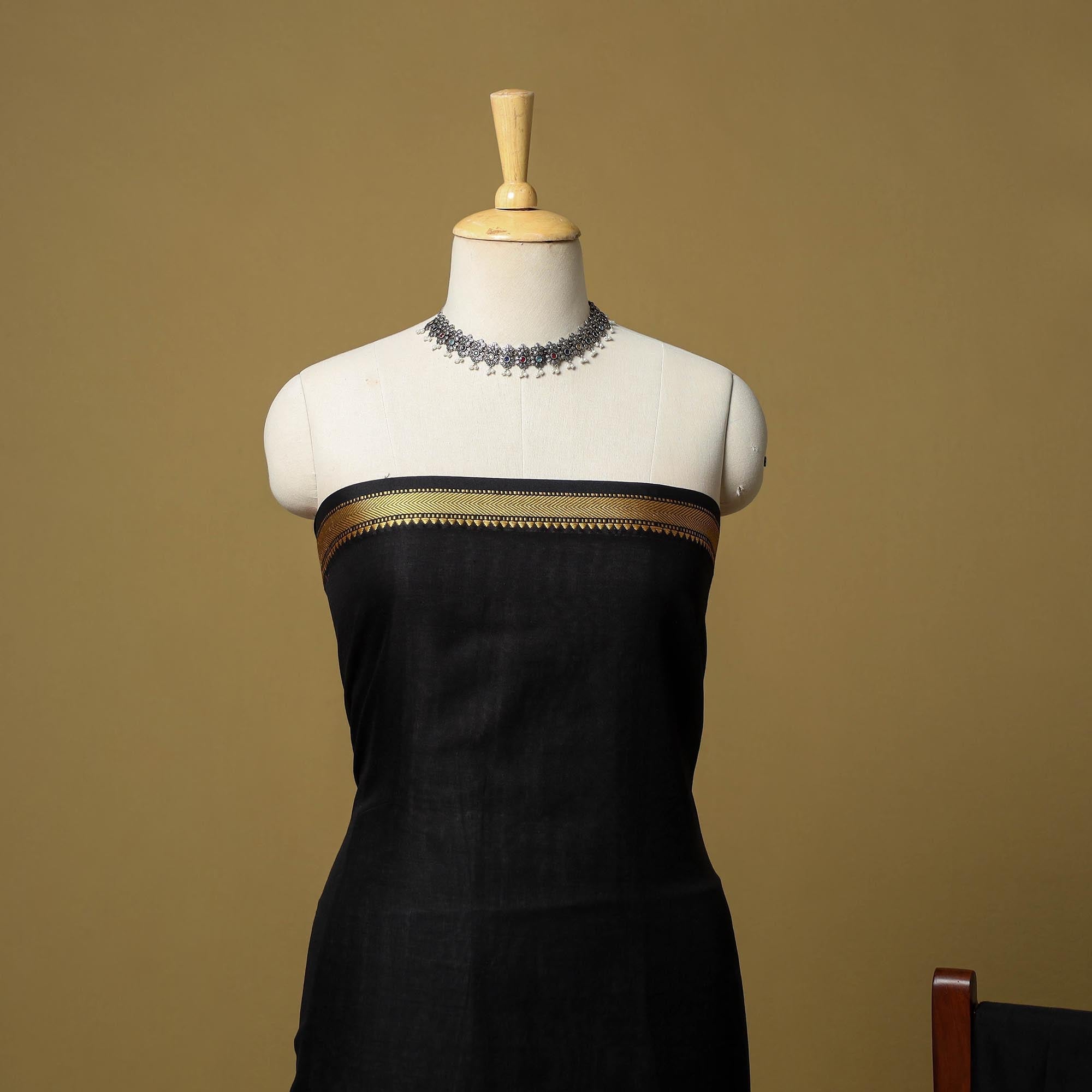 Black - 3pc Cotton Unstitched Dharwad Dress Material with Border 03