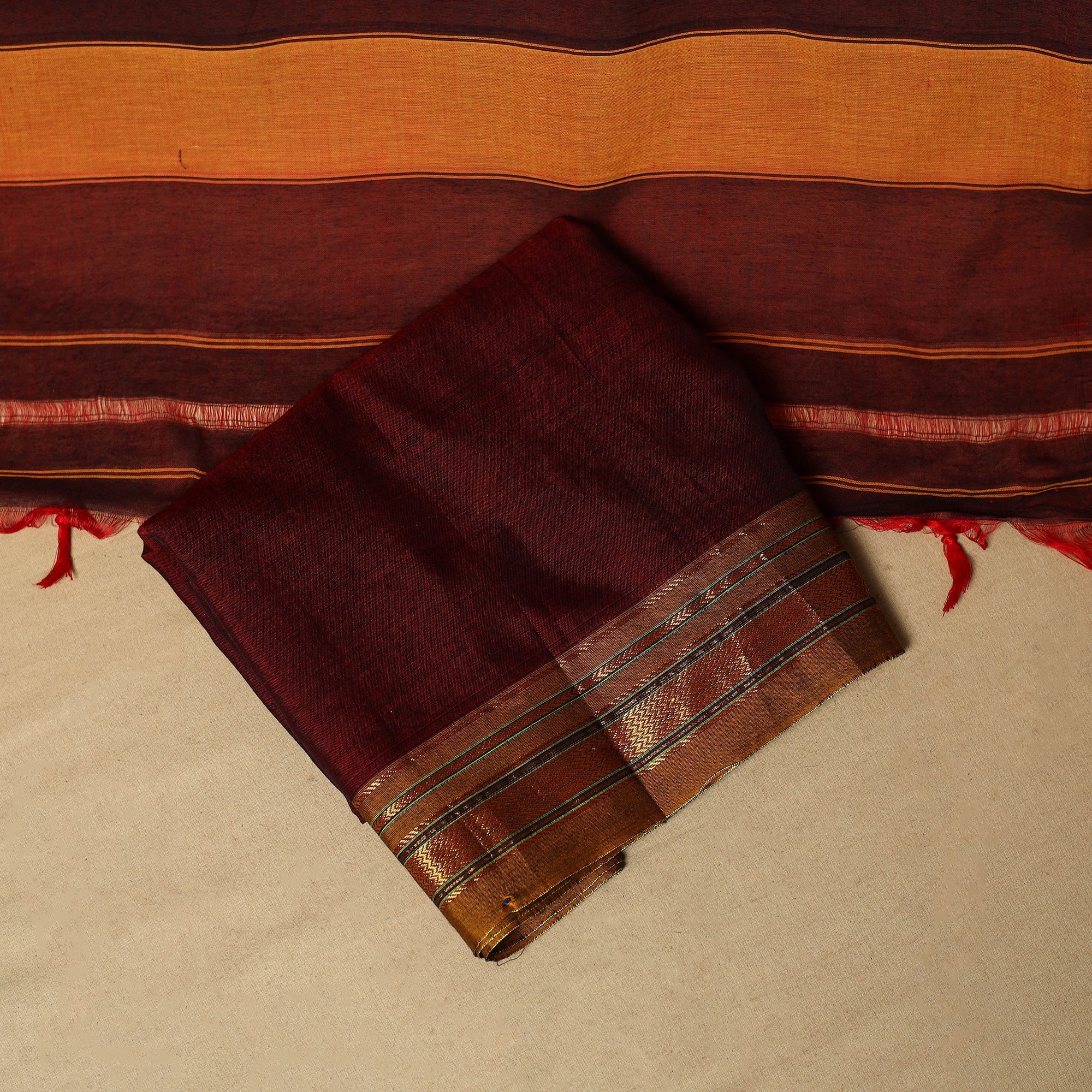 Brown - 3pc Cotton Unstitched Dharwad Dress Material with Border 17