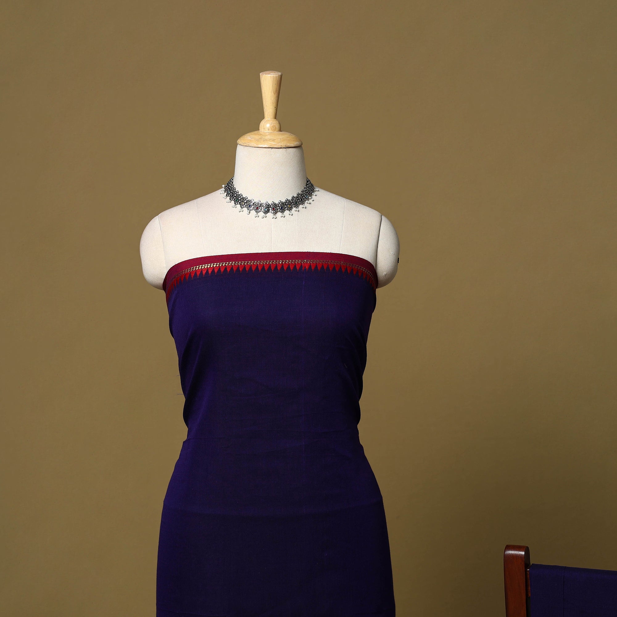 Blue - 3pc Cotton Unstitched Dharwad Dress Material with Border 51