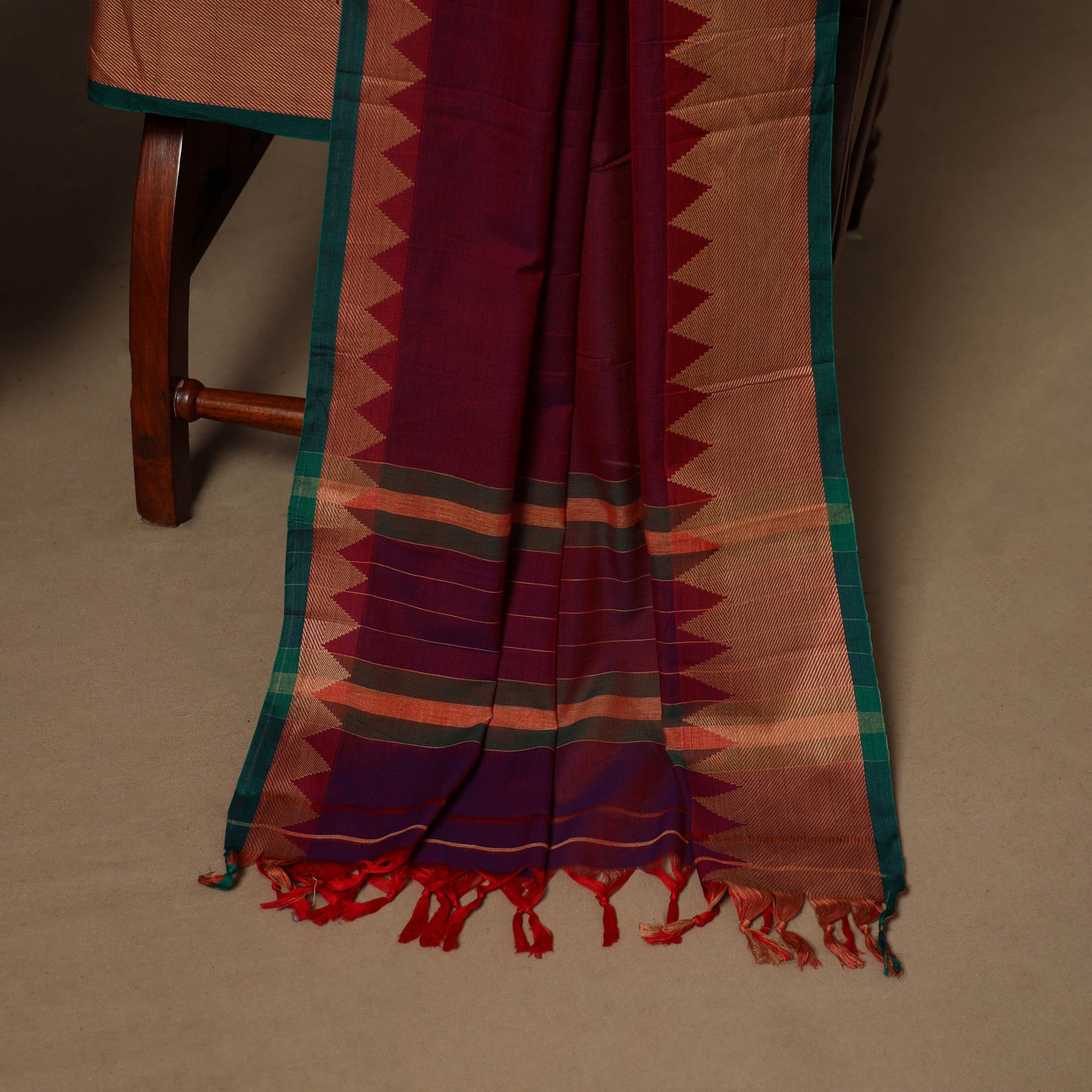 Maroon 3pc cotton dress material set from Dharwad, Karnataka. This set is a tribute to the rich textile heritage of the region, featuring traditional woven border work that adds a touch of sophistication. The set includes a beautifully crafted kurta piece, a matching bottom/salwar piece, and a coordinating dupatta. Crafted with precision and care, this suit material set offers both style and comfort. Whether you're attending a festive occasion or a casual gathering, this ensemble is sure to make a lasting impression.