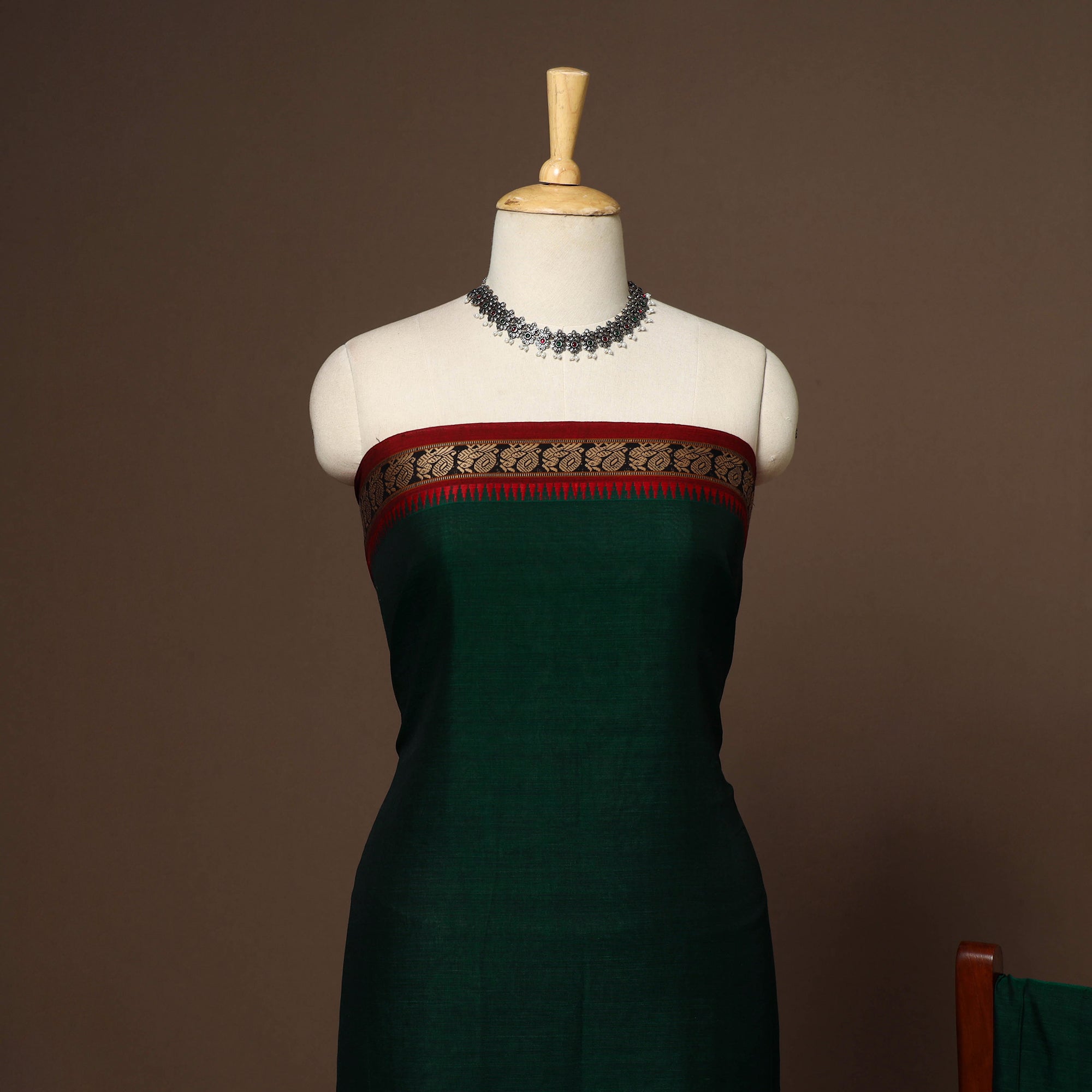 Green - 3pc Cotton Unstitched Dharwad Dress Material with Border 46