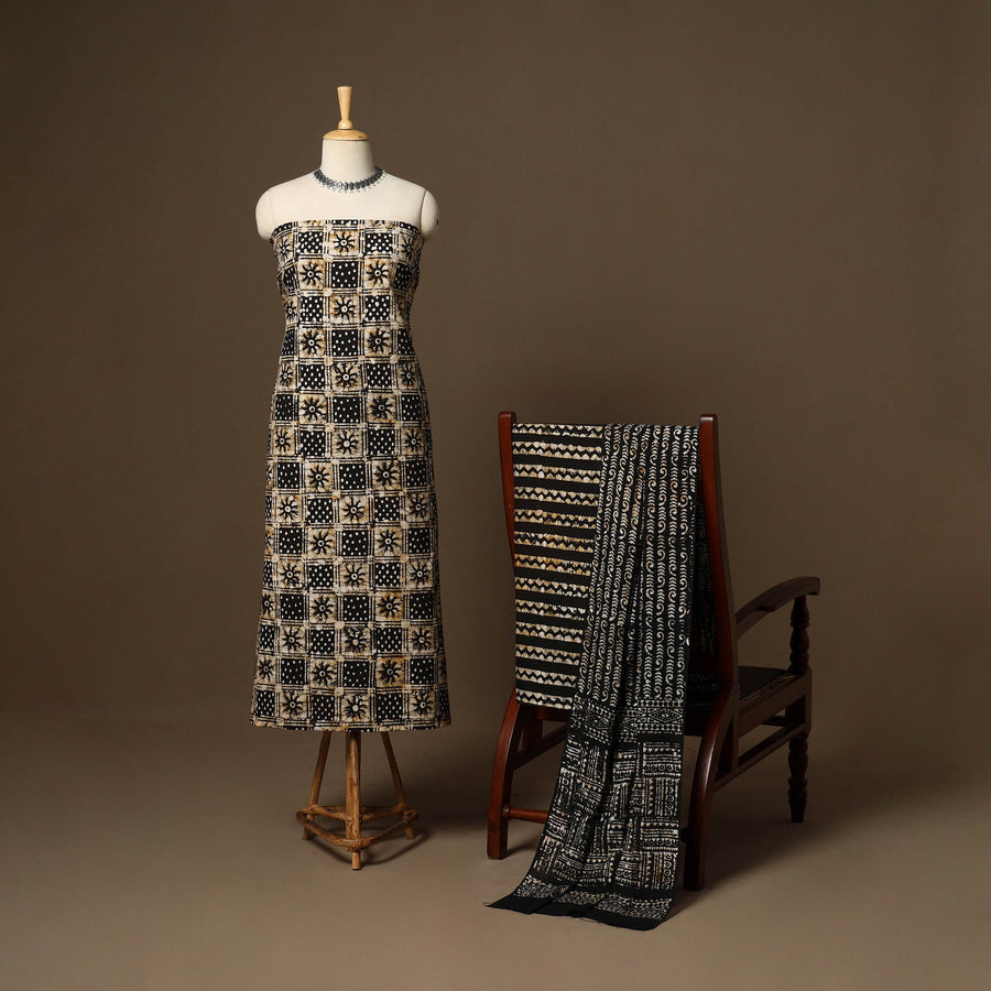 This brown 3pc cotton batik print dress material, crafted in Kutch using traditional wax-resist dyeing techniques. Batik offers both durability and comfort, making it a perfect choice for everyday or festive wear. The vibrant colors and intricate designs make this set a statement piece.
