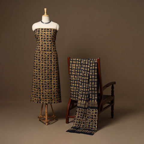 This brown 3pc cotton batik print dress material, crafted in Kutch using traditional wax-resist dyeing techniques. Batik offers both durability and comfort, making it a perfect choice for everyday or festive wear. The vibrant colors and intricate designs make this set a statement piece.