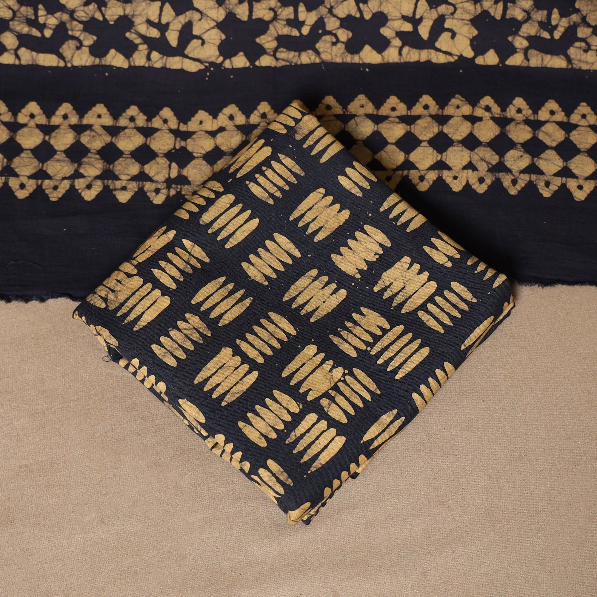 Batik is a very famous technique of wax-resist dyeing applied to whole cloth. The traditional designs and motifs in Indian batik are exceptional. It is a type of resist printing process wherein wax is applied to the fabric in specific areas.