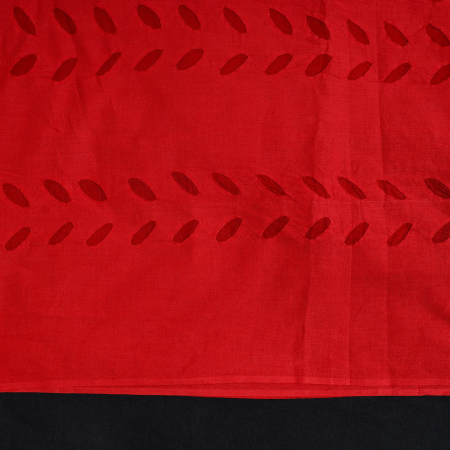 Red - Barmer Cut Work Cotton Applique 3pc Unstitched Dress Material 08