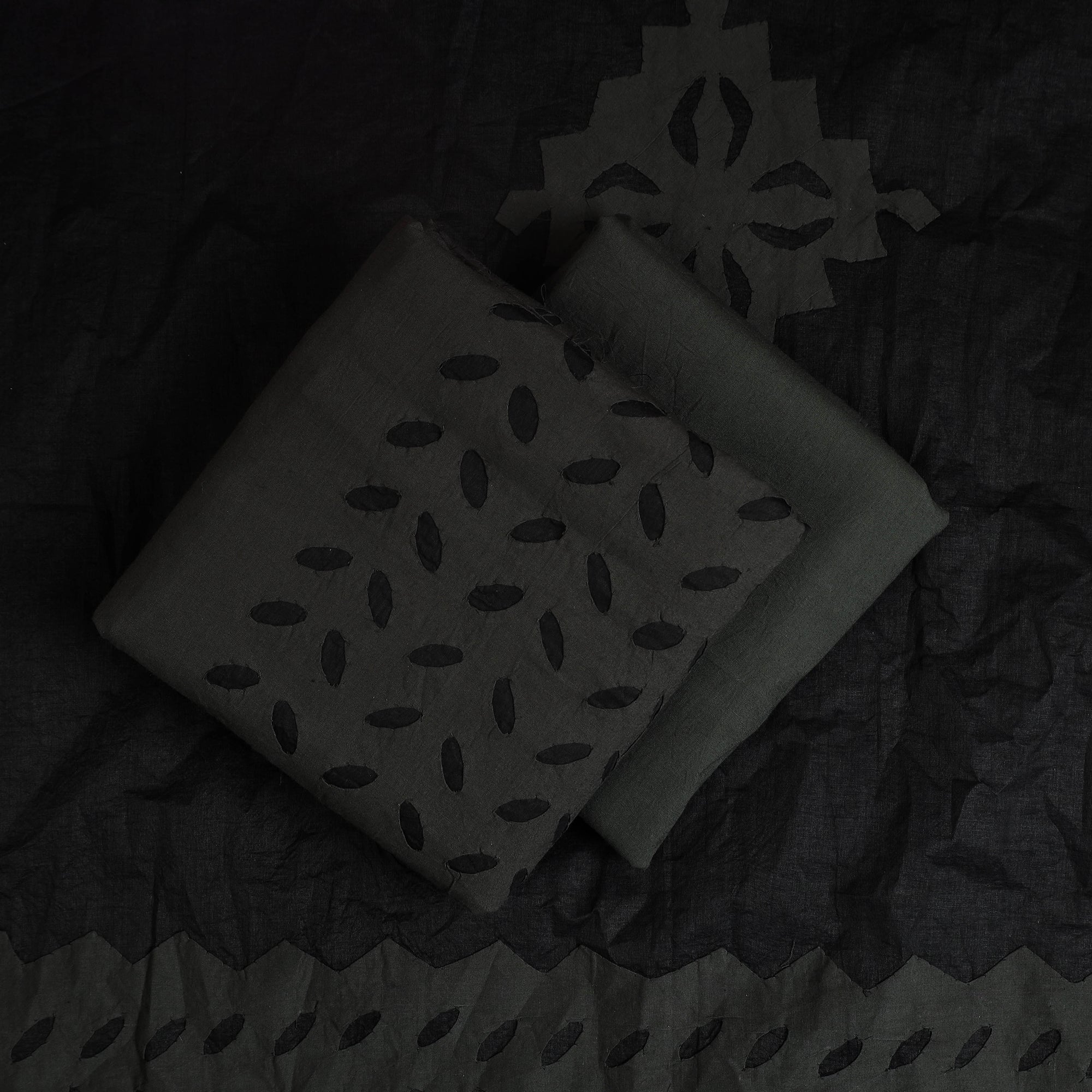 Black - Cutwork Cotton Applique Cushion Cover (16 x 16 in)