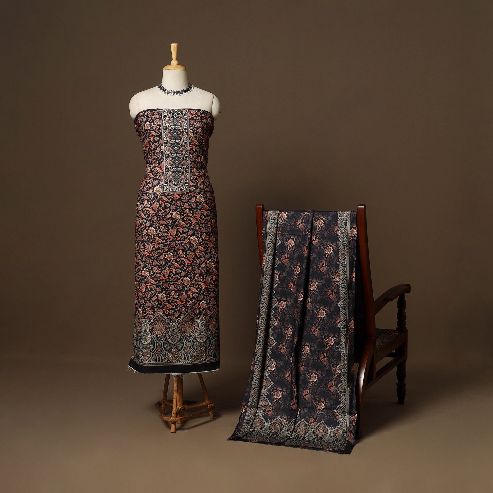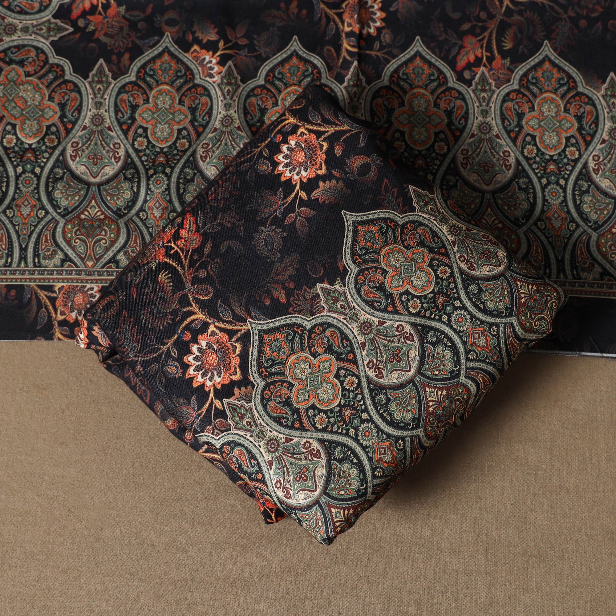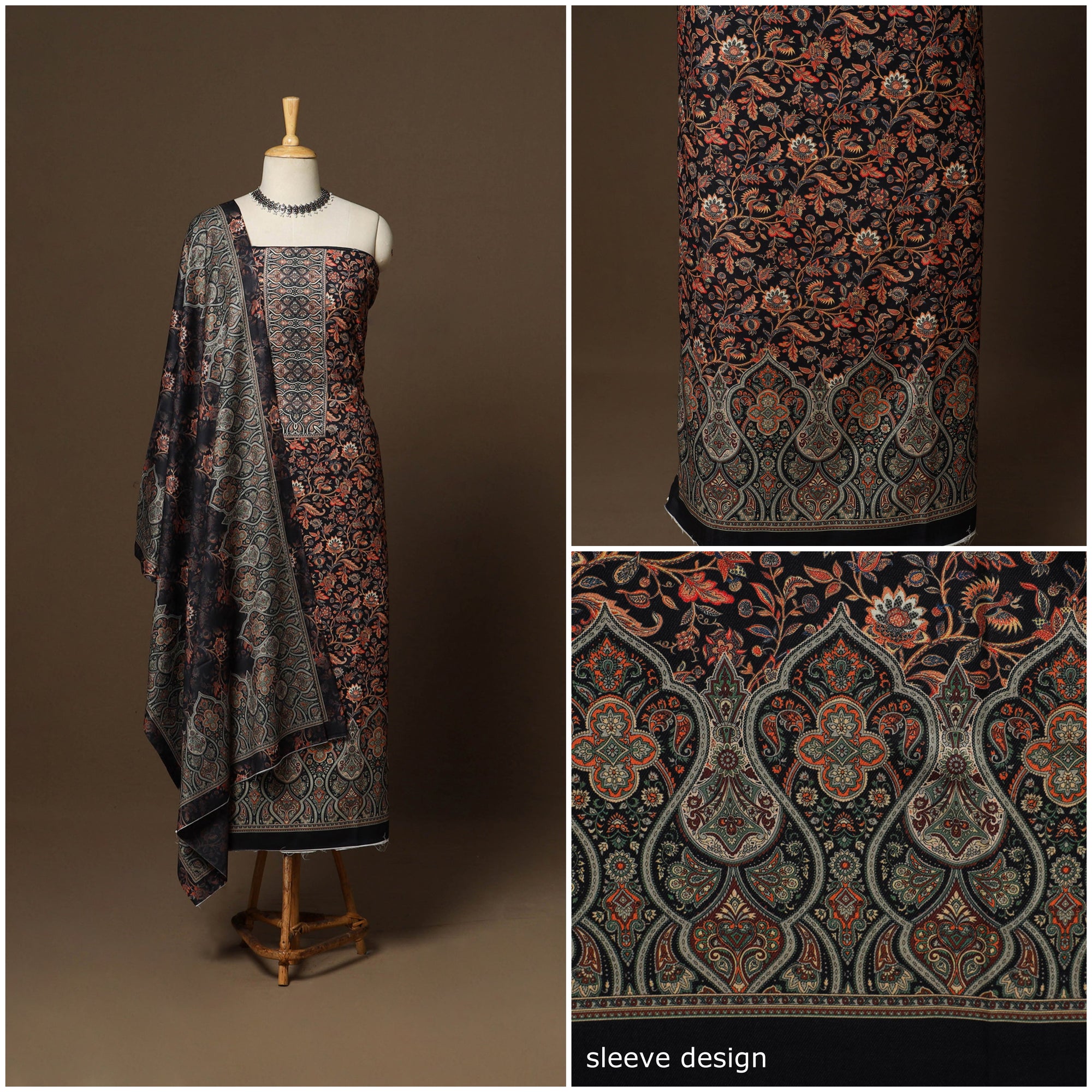 This black 3pc digital printed merino wool unstitched dress material is perfect for elegant winter wear. Made from premium merino wool, it provides warmth, comfort, and a soft, luxurious feel. The set includes fabric for the top, bottom, and dupatta, beautifully enhanced with detailed digital prints. Ideal for tailoring into chic suits for casual gatherings or festive occasions. A graceful choice for stylish and cozy winter dressing.