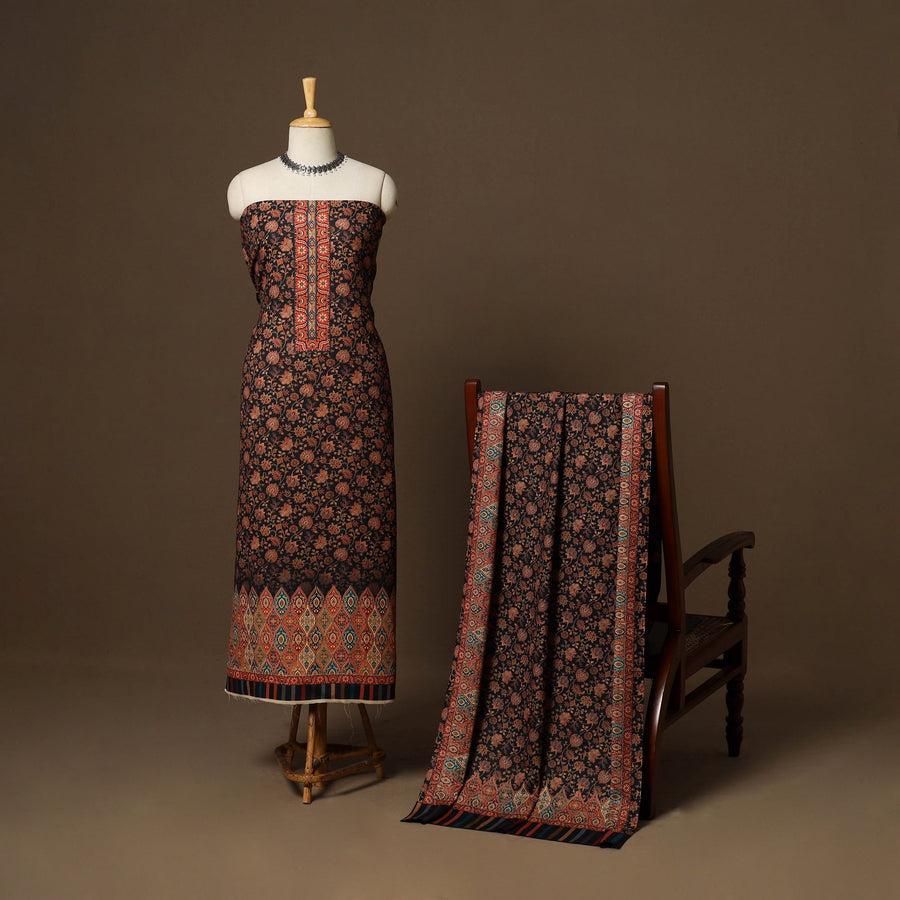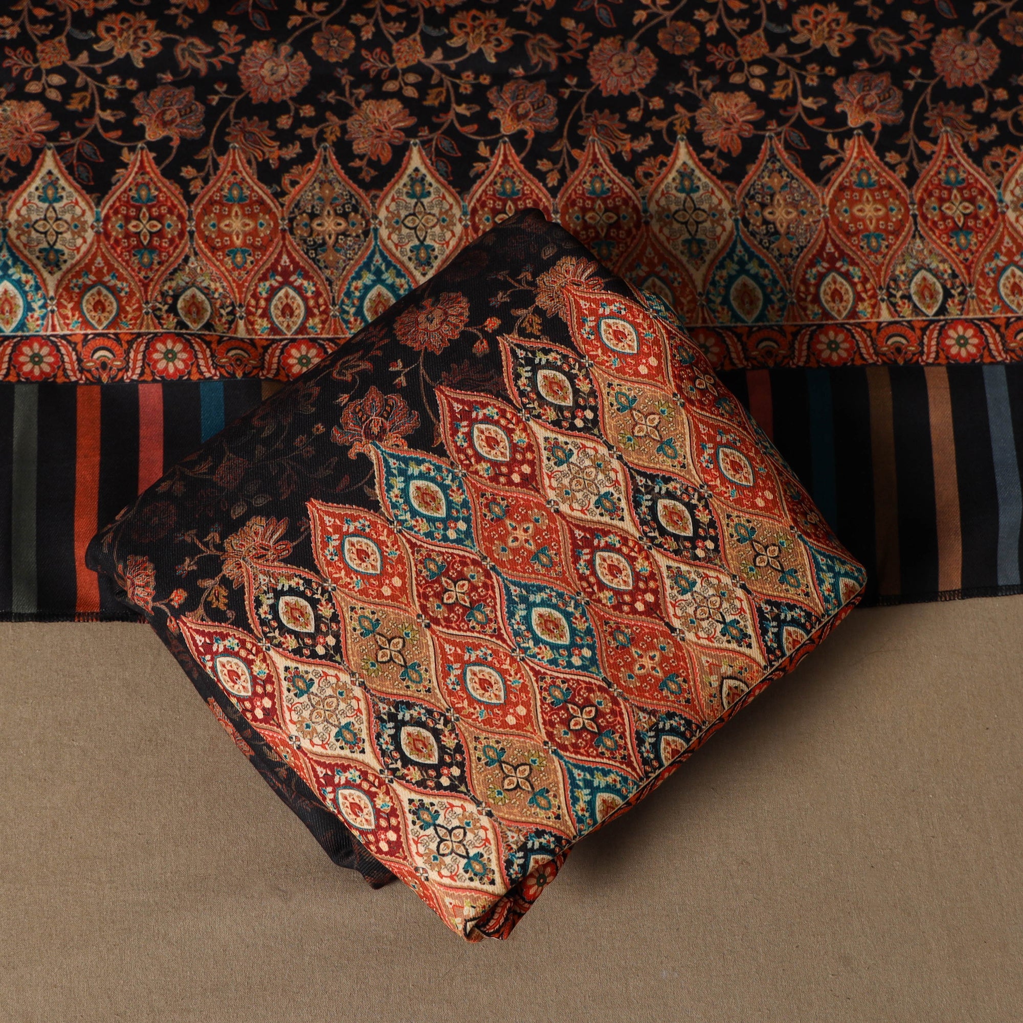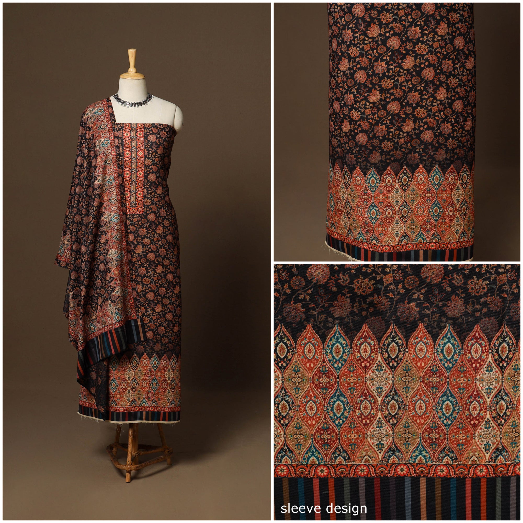 Black - 3pc Digital Print Merino Wool Unstitched Dress Material 43