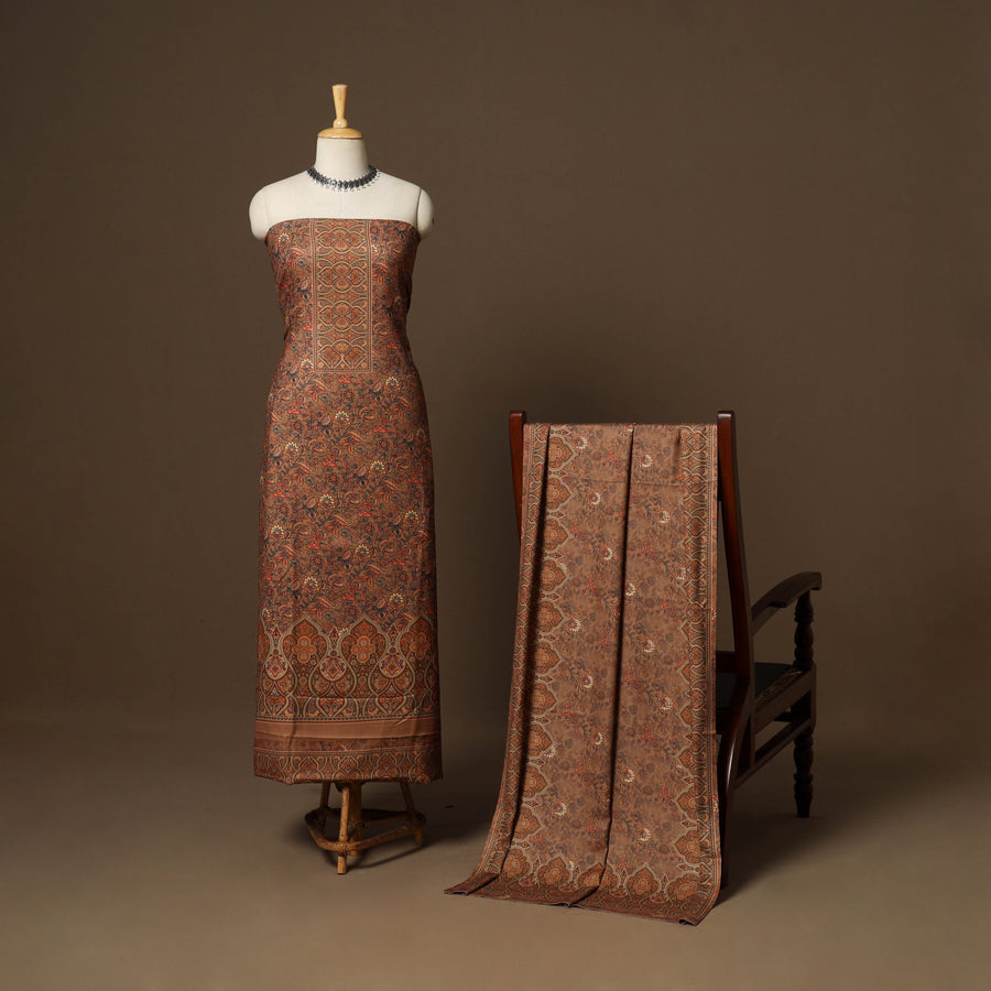 This brown 3pc digital printed merino wool unstitched dress material is perfect for elegant winter wear. Made from premium merino wool, it provides warmth, comfort, and a soft, luxurious feel. The set includes fabric for the top, bottom, and dupatta, beautifully enhanced with detailed digital prints. Ideal for tailoring into chic suits for casual gatherings or festive occasions. A graceful choice for stylish and cozy winter dressing.