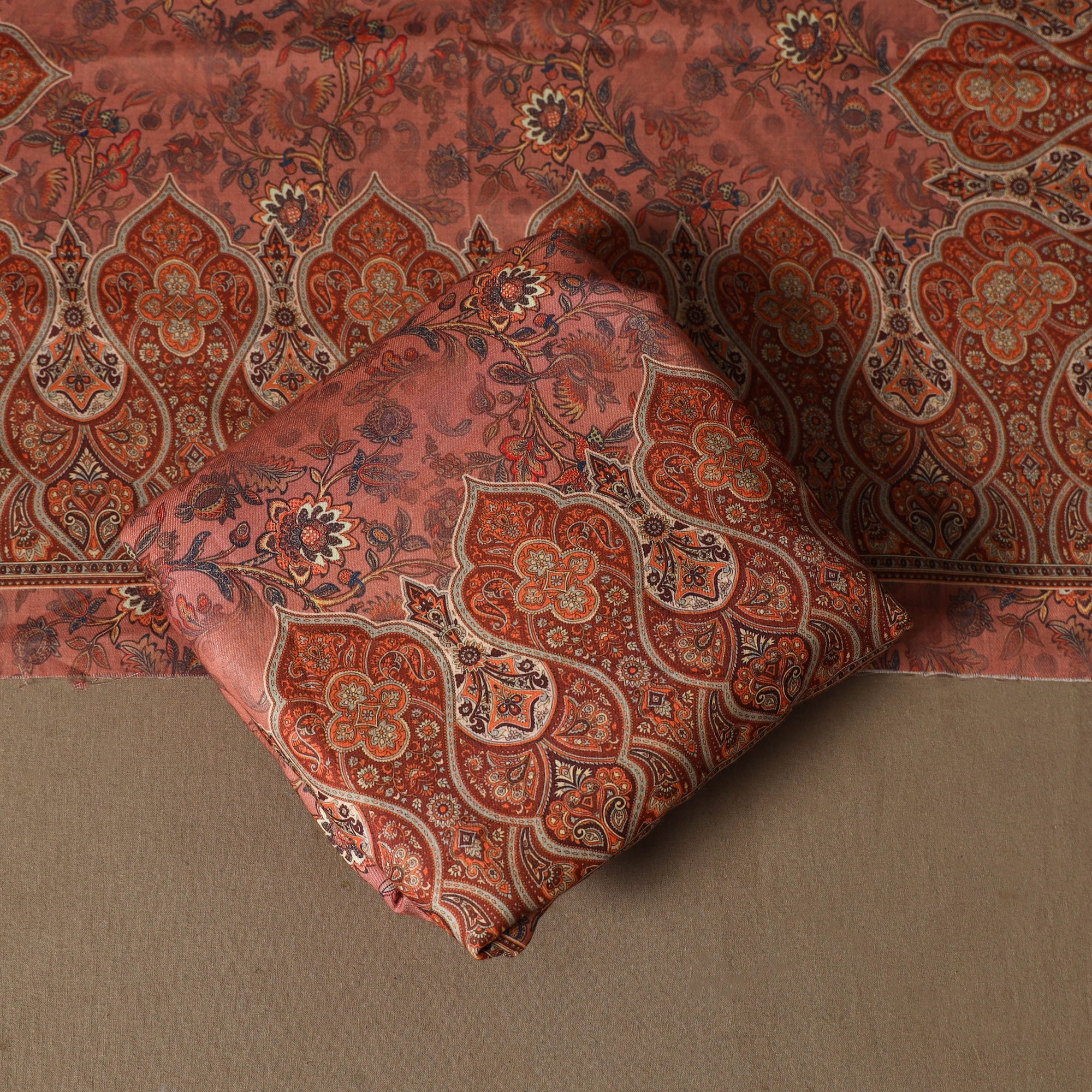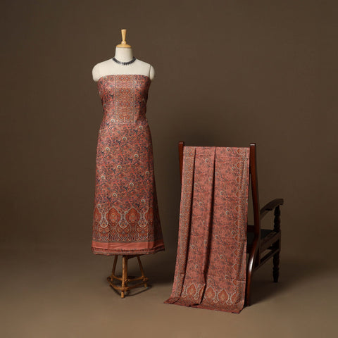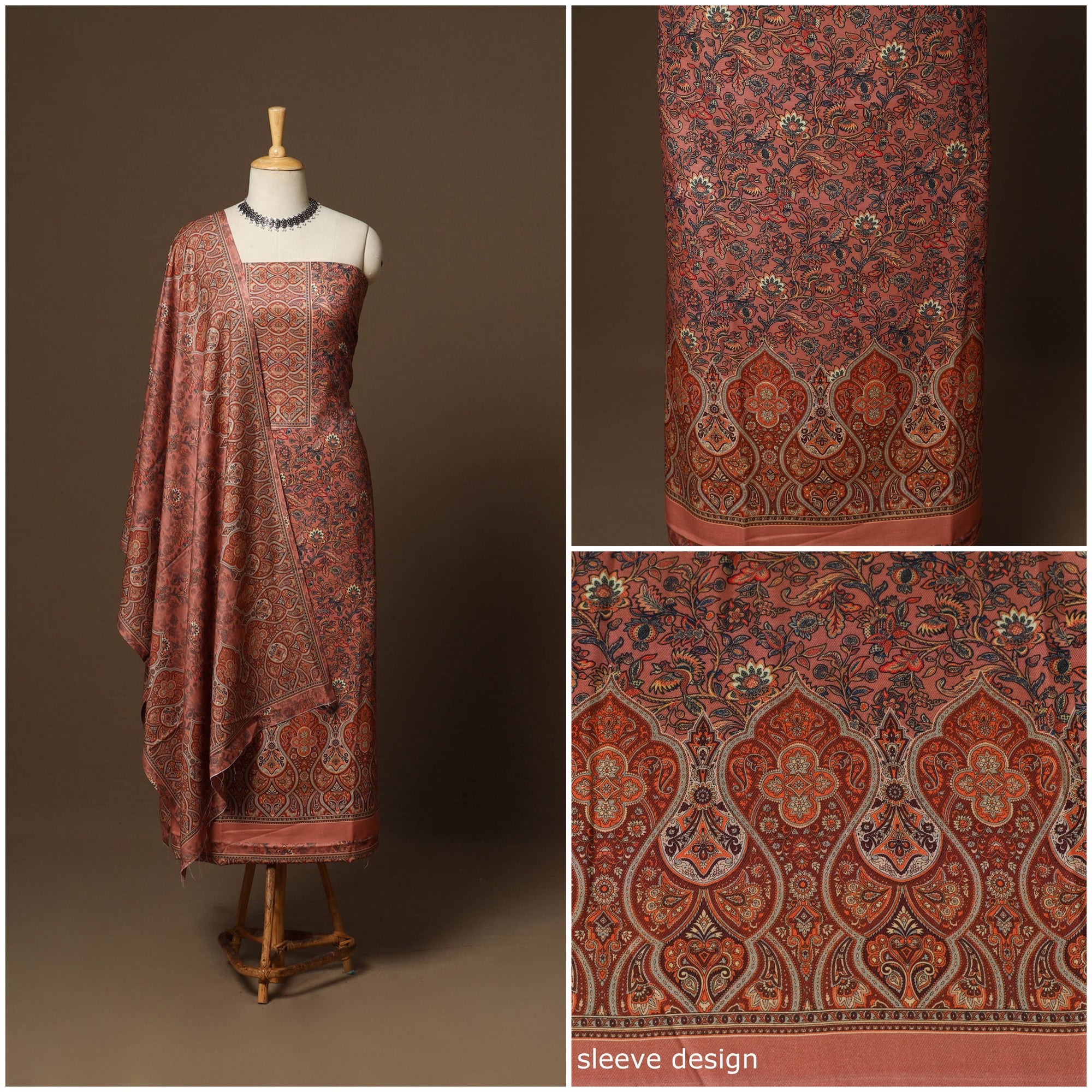 • Brown - 3pc digital merino wool unstitched dress material